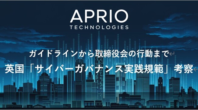 英国発 サイバーセキュリティ企業「APRIO TECHNOLOGIES」、「英国のサイバーガバナンス実践規範の考察」を…