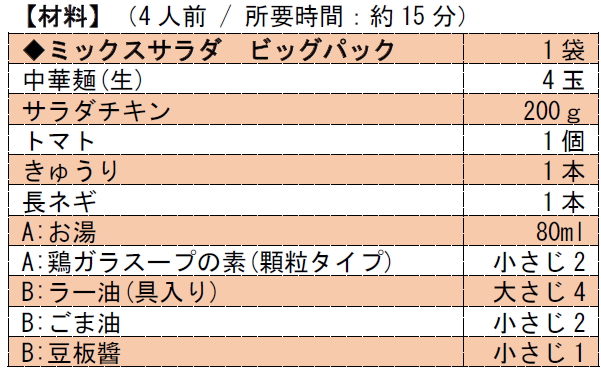 【材料】(4人前 / 所要時間:約15分)