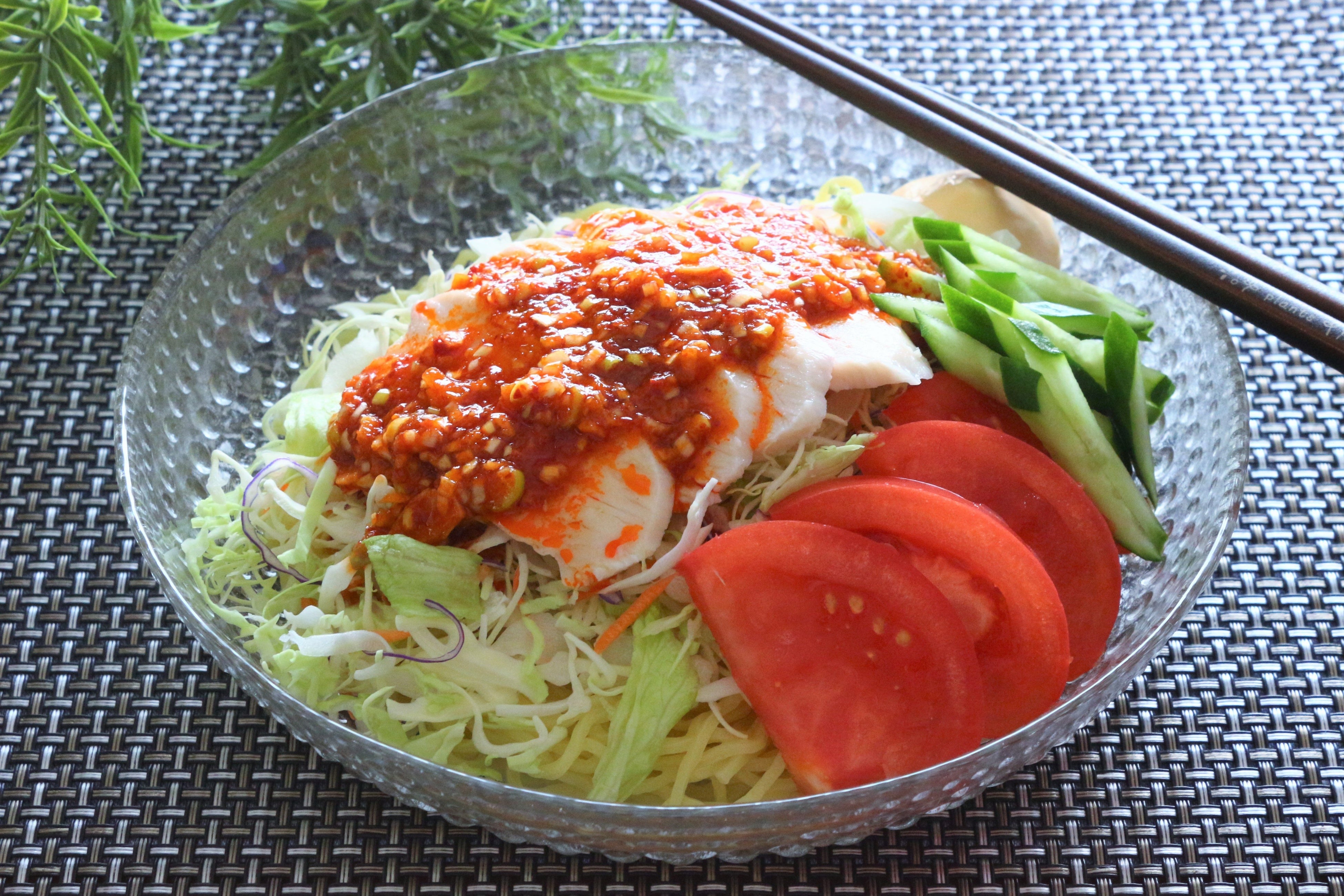 「よだれ鶏風ピリ辛サラダ麺」