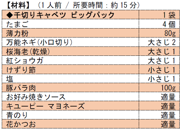 [画像1: https://prcdn.freetls.fastly.net/release_image/60855/172/60855-172-cc0de676c96f0848923ffc7f8b066d40-1586x1863.jpg?width=536&quality=85%2C75&format=jpeg&auto=webp&fit=bounds&bg-color=fff ]<千切りキャベツビッグパック>[画像2: https://prcdn.freetls.fastly.net/release_image/60855/172/60855-172-ceb32c777cc7e02b2ad86ccee8f536f3-1591x1663.jpg?width=536&quality=85%2C75&format=jpeg&auto=webp&fit=bounds&bg-color=fff ]<ミックスサラダビッグパック>