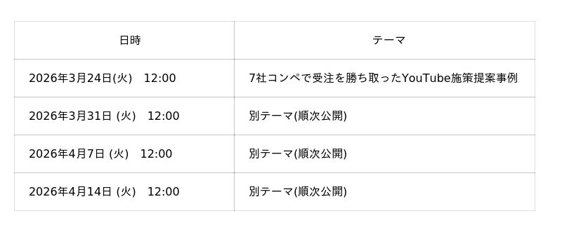■無料勉強会のテーマ:7社コンペで受注を勝ち取ったYouTube施策提案事例