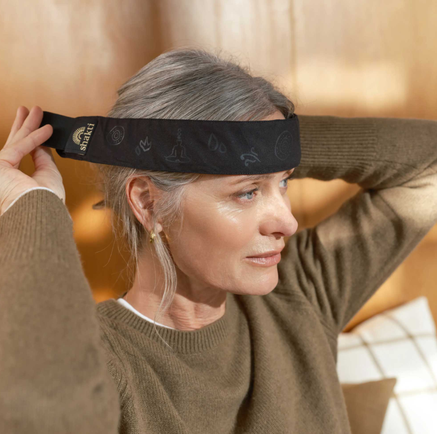 です。Shaktiマットのセッション後の仕上げとしてもおすすめで、目元やこめかみを穏やかに覆い、