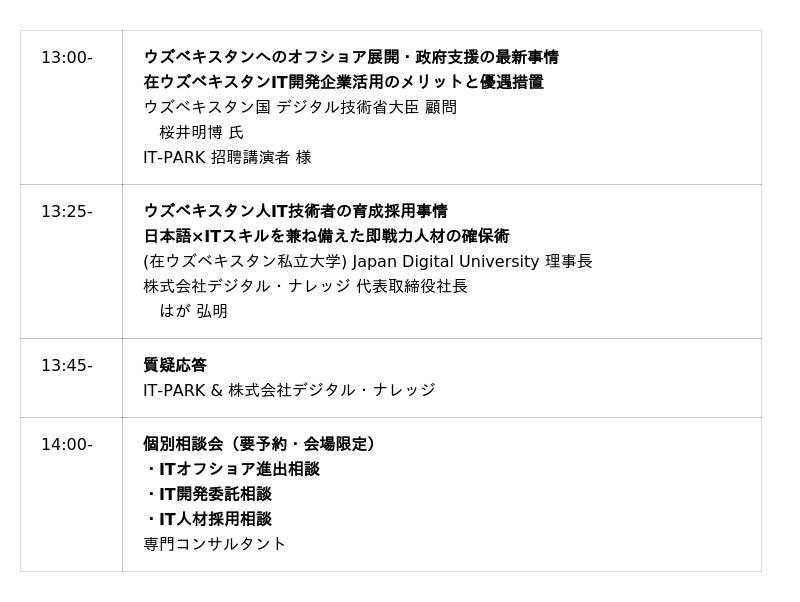 IT-PARK共催セミナー<ウズベキスタン国 デジタル技術省大臣顧問がご登壇>最新支援策の紹介に加え、個別相談会も実施