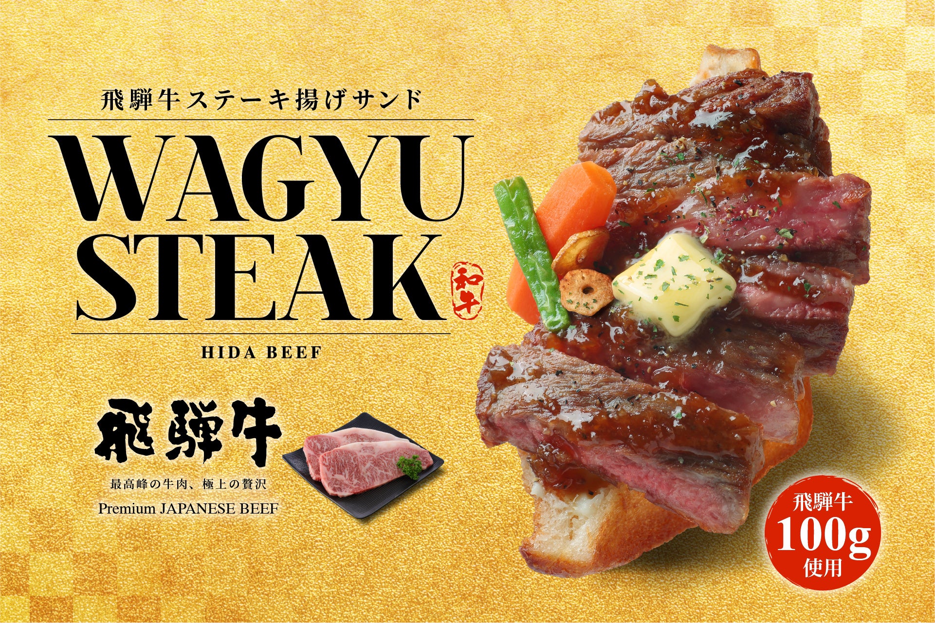 [画像2: https://prcdn.freetls.fastly.net/release_image/107332/82/107332-82-a134df2f9e3f680524c846203762429b-2160x2700.jpg?width=536&quality=85%2C75&format=jpeg&auto=webp&fit=bounds&bg-color=fff ]飛騨牛ステーキを、揚げたてのパンで包みました。ステーキソース、バター、黒こしょう、ポテトサラダ、にんじん、いんげん-。一皿のステーキに必要なものが、すべて片手の中に収まっています。旅先で出会う一品だからこそ、素材も、食べごたえも、妥協していません。