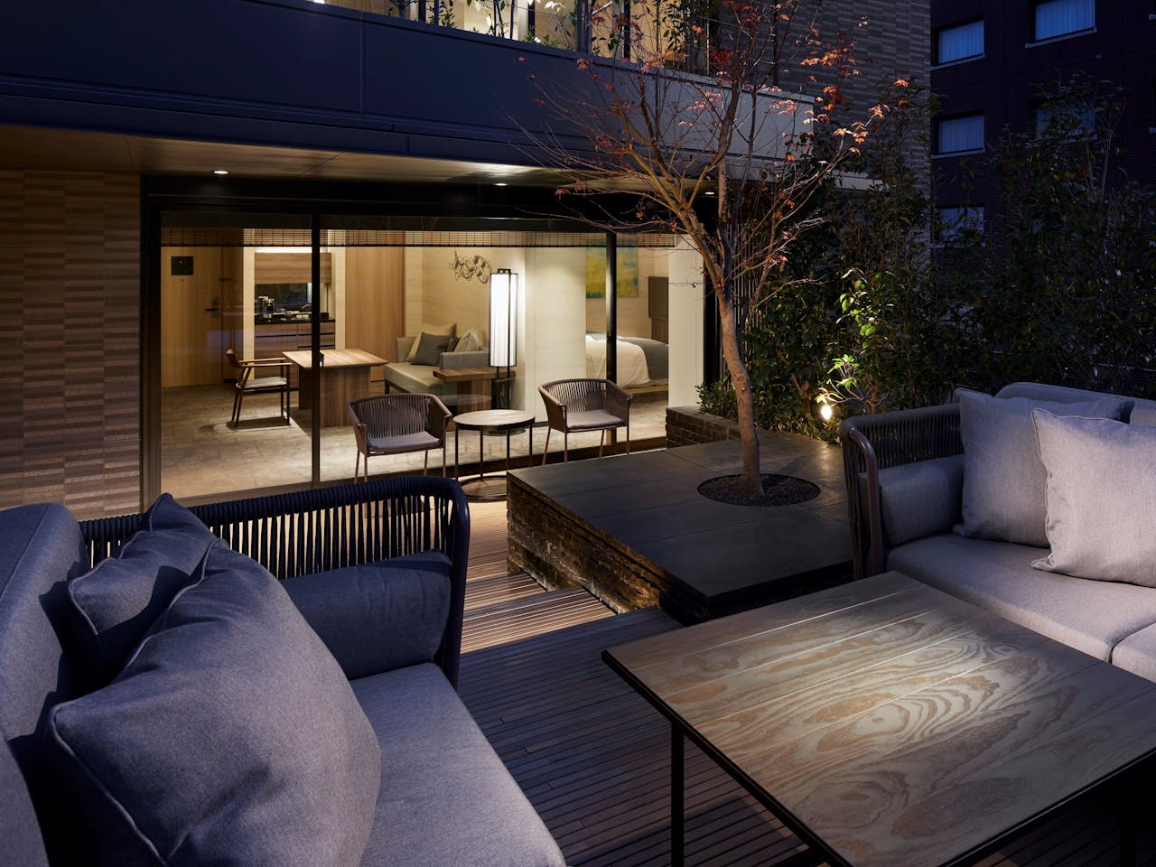 JR京都駅のすぐそばにある、THE THOUSAND KYOTO(ザ・サウザンド キョウト)。スタイリッシュなスイートルームは、開放感あふれるデザイン。庭園の緑を眺め、テラスで風を感じ、極上のリラックスタイムを過ごせるはず。