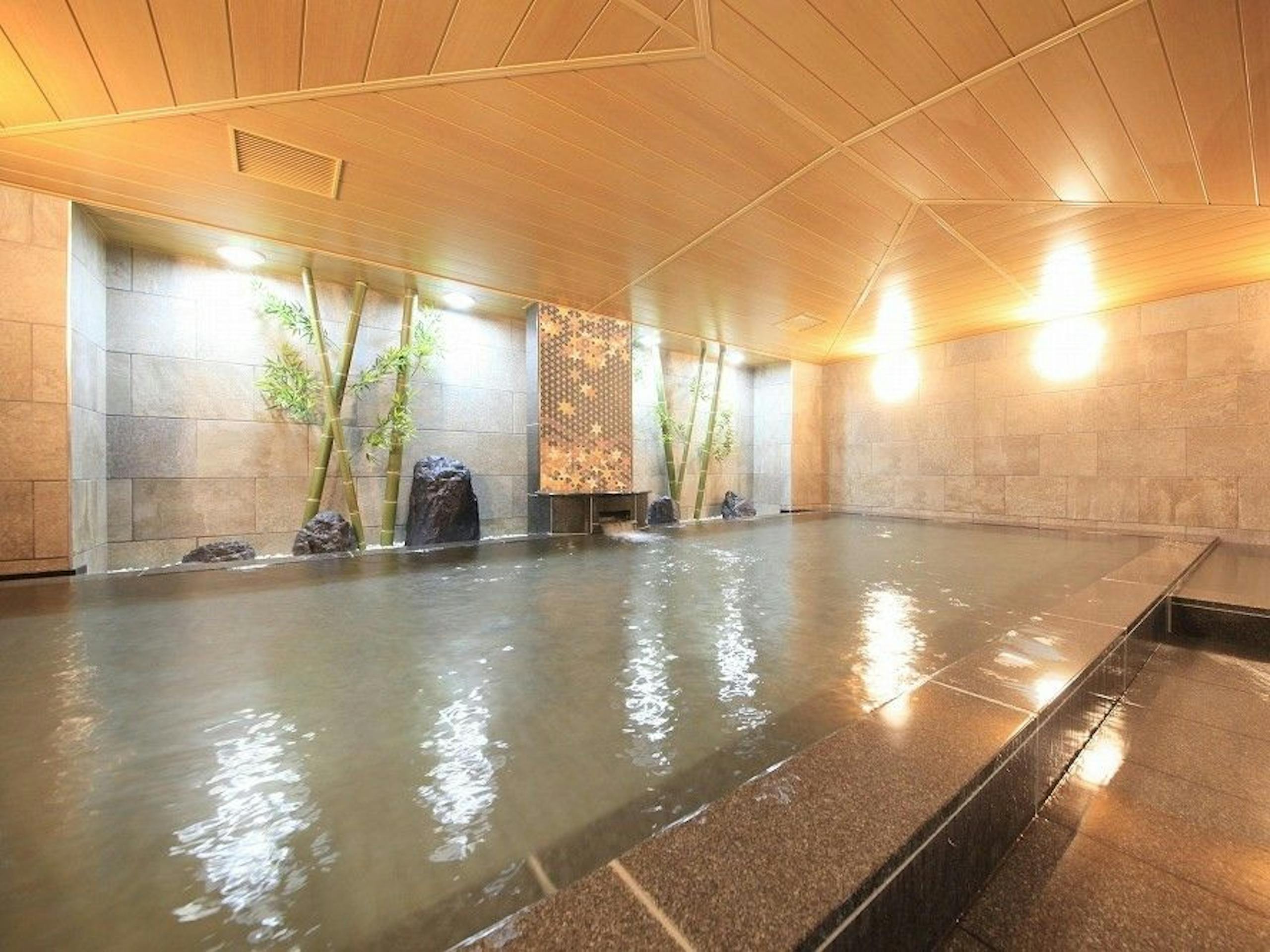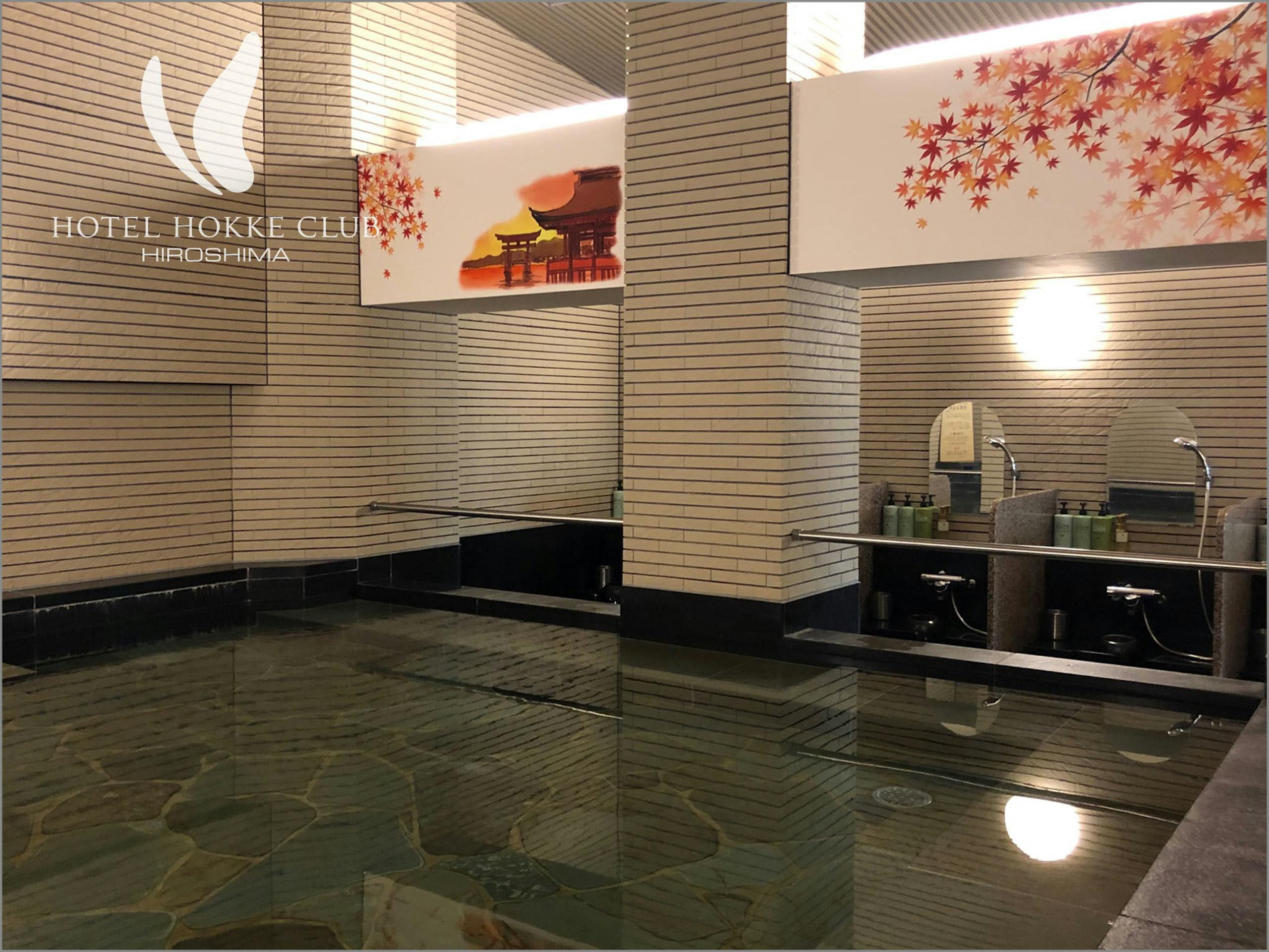 広島県広島市、路面電車「袋町」駅から徒歩1分の「ホテル法華クラブ広島」。大浴場「鯉城の湯」では、岡山県阿部鉱山から採掘される天然鉱物、光明石を利用した人工温泉「光明石温泉」での入浴を楽しめます。肩こり・腰痛、冷え性や疲労回復に効果的な湯にゆっくりと浸かり、ぜひ1日の疲れを癒してください。