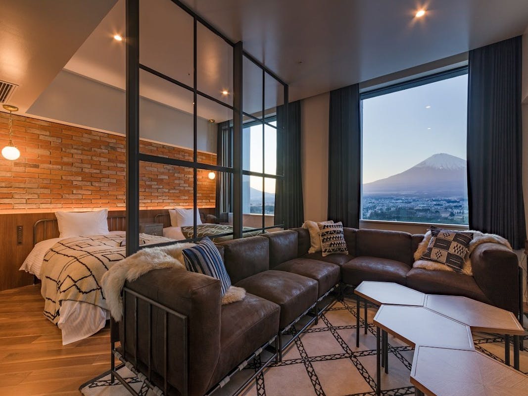 御殿場プレミアム・アウトレットの敷地内に建つ「HOTEL CLAD(ホテル クラッド)」は、雄大な富士山を望む露天風呂とスタイリッシュなインテリアが自慢の温泉旅館。湯殿やレストランから見える富士の眺めが旅の疲れを癒やしてくれます。おしゃれな夫婦やカップルにはjournal standard Furnitureとコラボした限定の「ブルックリンルーム」もおすすめ。