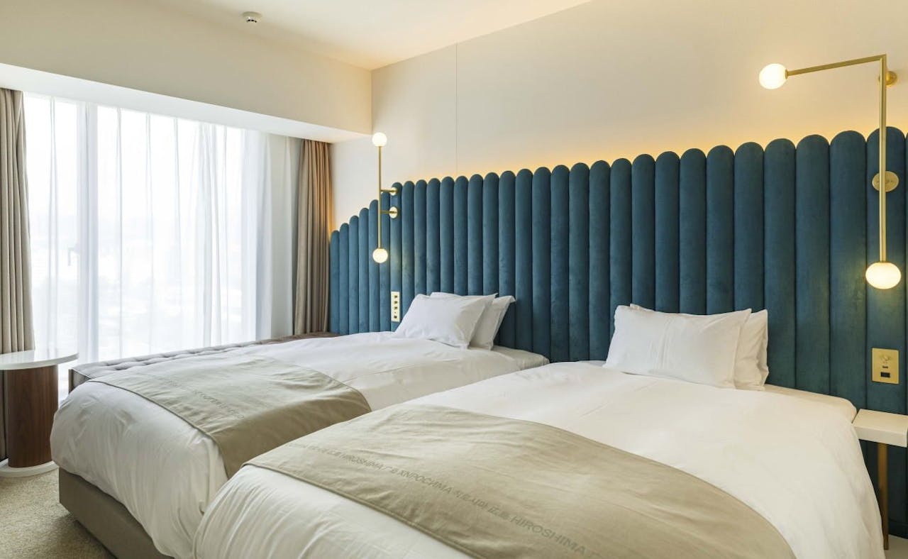 2020年7月、広電2号線の袋町・中電前駅からそれぞれ徒歩3分、JR広島駅からは車で10分の場所にオープンした「ザ ノット 広島」。繁華街へも歩いて行ける、観光の拠点にするのにぴったりのホテルです。おしゃれなデザインの内装、館内レストランでいただける美味しい朝食も宿泊客から好評。