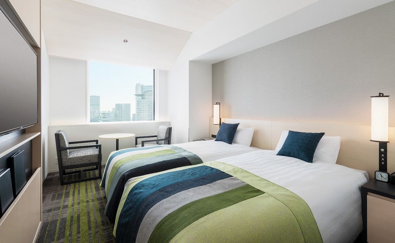 JR大阪駅から徒歩3分の好立地にある、ホテル阪急レスパイア大阪。都会の真ん中にありながらも、エントランスに足を踏み入れれば開放的な空間が広がっています。客室は清潔感のある落ち着いたデザイン。全室バス・トイレ・洗面台が独立、バスルームは洗い場付きのオーバーヘッドシャワー付きで、機能性も充実しています。