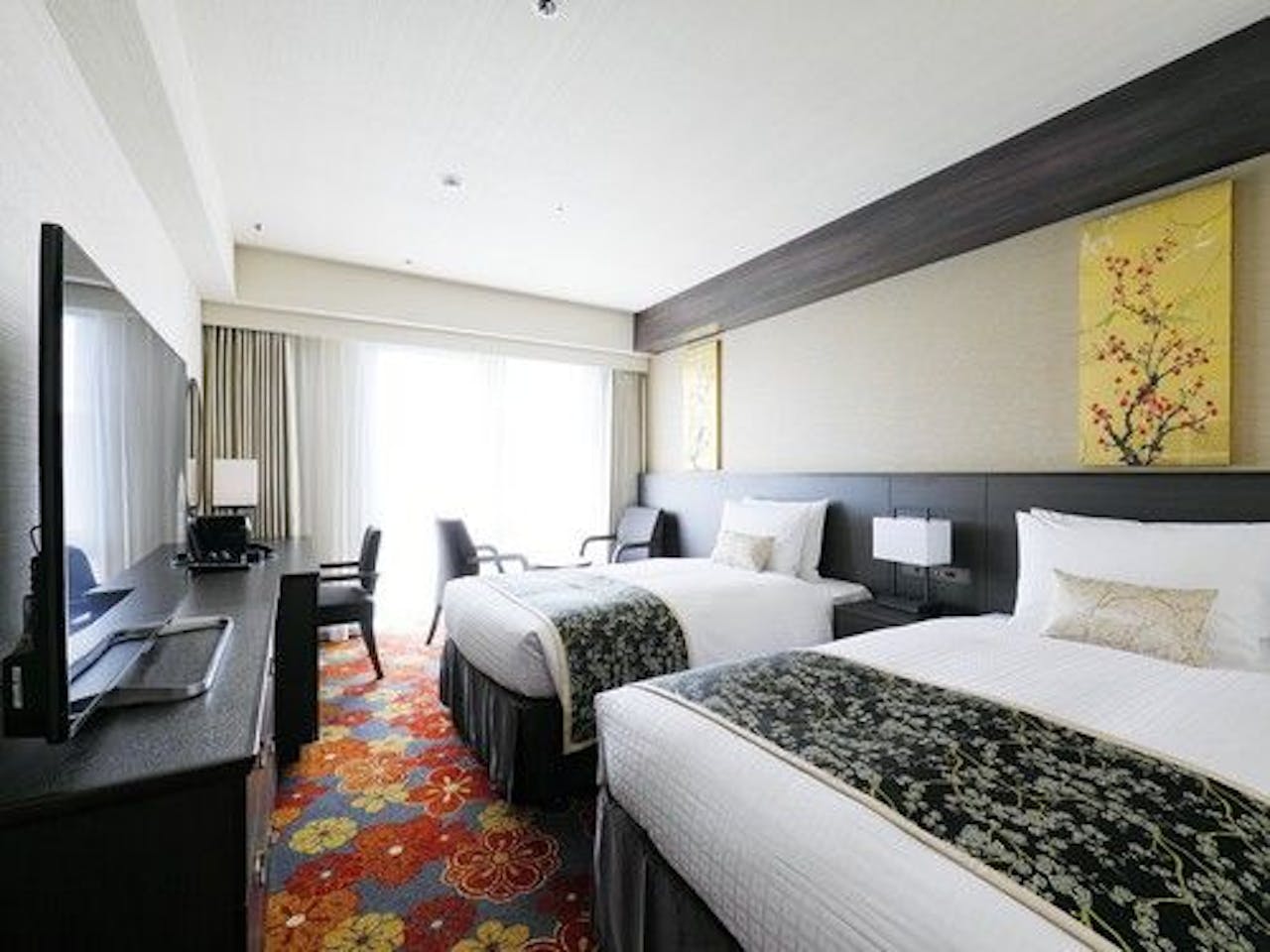 京都駅から徒歩約5分の場所に建つ「ダイワロイネットホテル京都グランデ(旧:ダイワロイヤルホテルグランデ 京都)」。客室は、京都らしい”和”を感じさせるデザインで、全室にシモンズ社製のベッドが備わっています。アクセス、設備、ホスピタリティのどれも満足できるコスパの高い宿です。