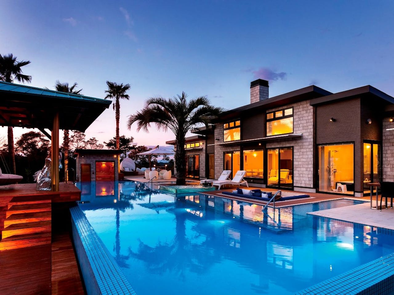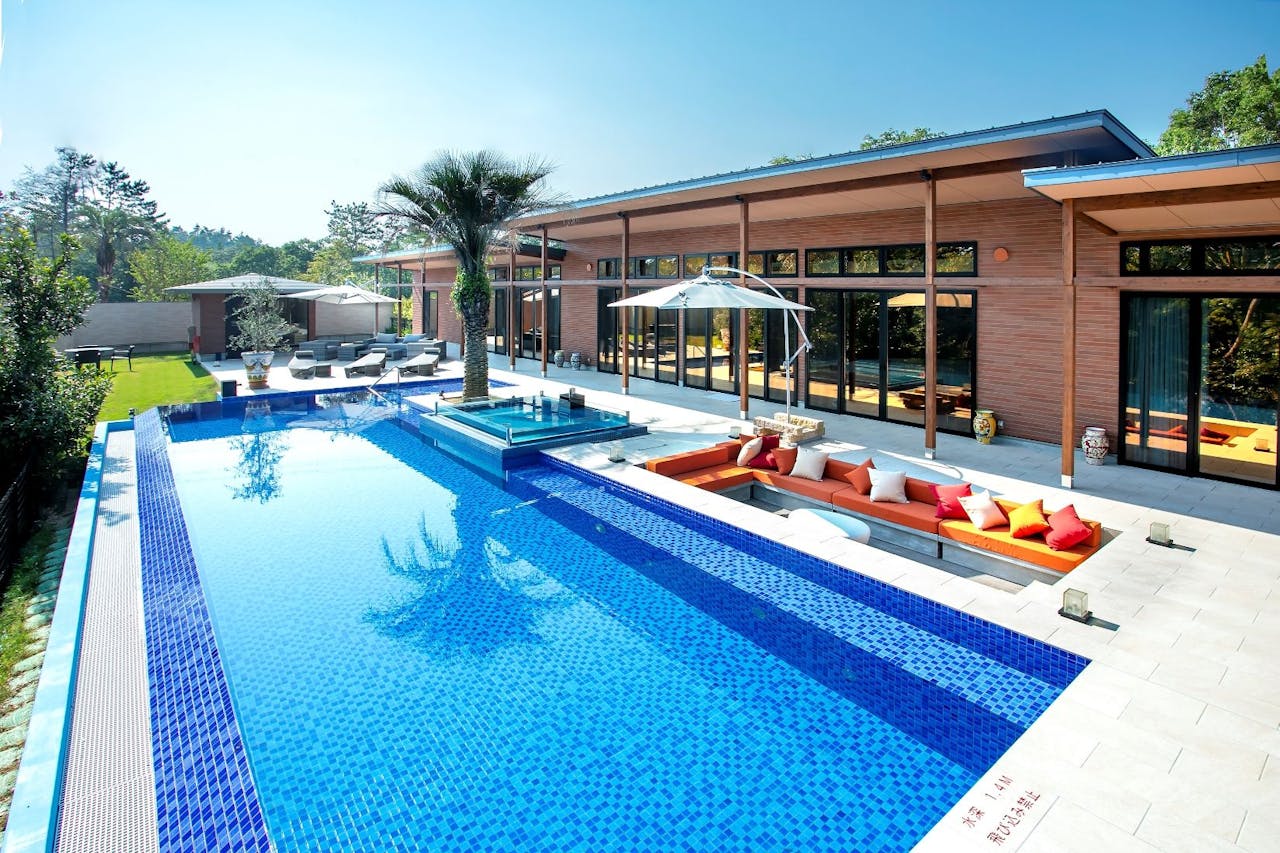 兵庫県三木市の冒険テーマパーク「ネスタリゾート」内の宿泊施設、「ネスタリゾート神戸 ロイヤルスイート [NESTA RESORT KOBE]」。自然に囲まれた環境で、ゆったりと寛げるフォレストリゾートです。一棟貸しのお部屋には年中遊べる温水プールやジャグジー、バーベキュースペースも完備。贅沢な空間で過ごす非日常的なひとときが味わえます。