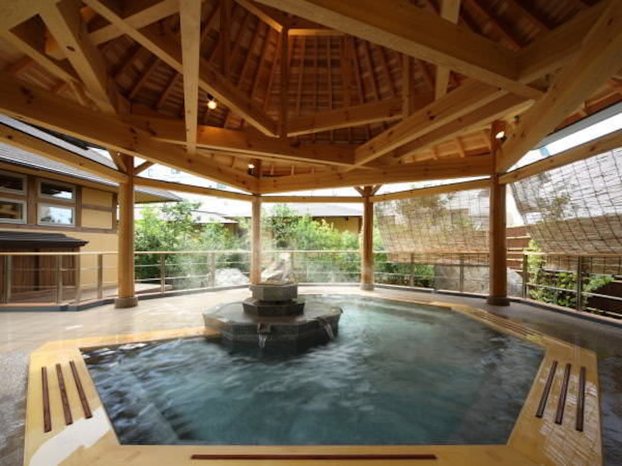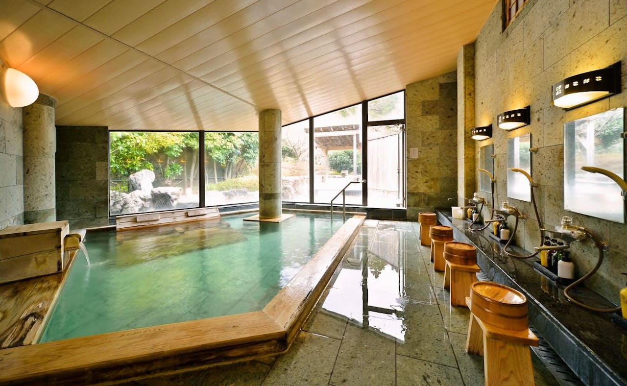 | お風呂 | ■大浴場の数:2 ■営業時間:— ■温泉:あり ■かけ流し:あり ■にごり湯:なし ■補足事項:加温 5:00~10:00、15:00~25:00 ■露天風呂の数:2 ■貸切風呂の数:4 ■温泉内風呂付客室