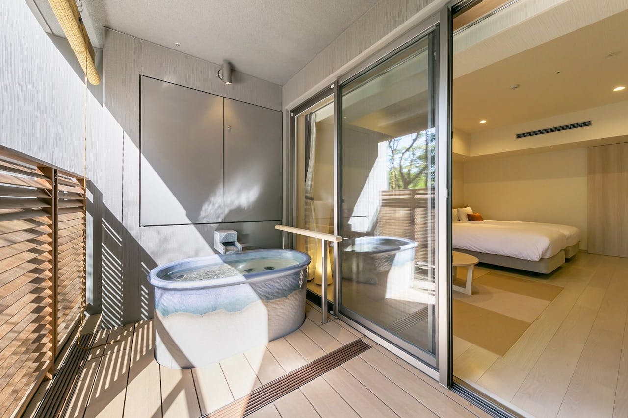 箱根・桃源台エリアの「箱根・芦ノ湖 はなをり」。こちらは芦ノ湖と箱根の山々を望む絶好のロケーションに佇む、癒しのリゾートです。全154室の客室は、洋室タイプでありながら靴を脱いで寛げる広々とした空間。客室露天風呂付きの客室を選べば、プライベート空間での入浴が楽しめます。