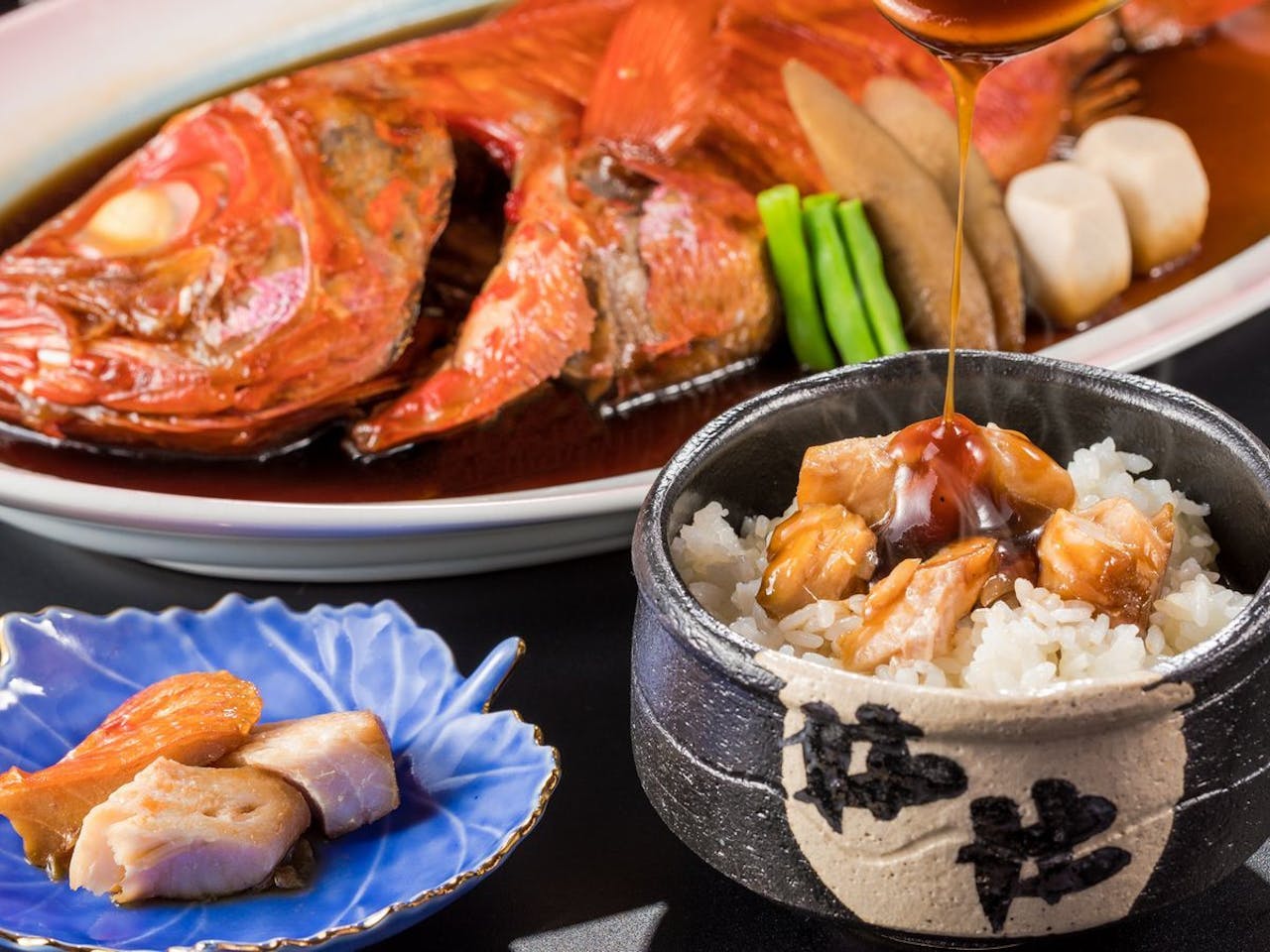 伊東線・伊豆急行の稲取駅から無料シャトルバスで5分ほどの場所にある、海一望絶景の宿 いなとり荘。伊豆の海を一望する絶好のロケーションで、漁師町・稲取ならではの新鮮な魚介類を堪能できます。中でも、この地の郷土料理である金目鯛の煮付けはこの宿の自慢。旨味たっぷりの煮汁と薬味を合わせて仕上げる締めのご飯「いなとり荘飯」も人気です。
