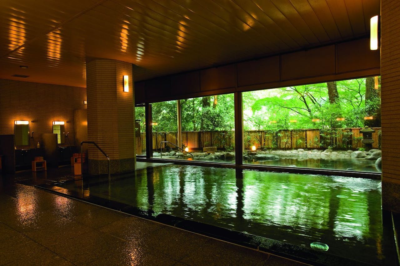 箱根湯本駅から徒歩12分ほどの場所にある、箱根湯本温泉 ホテルマイユクール祥月。館内には大浴場、露天風呂、露天ジャグジーが備わっており、美肌の湯といわれる温泉をゆっくりと楽しめます。大浴場の窓の外に広がるのは、風情のある日本庭園の風景。心地よい入浴体験に、身も心も癒されるはず。