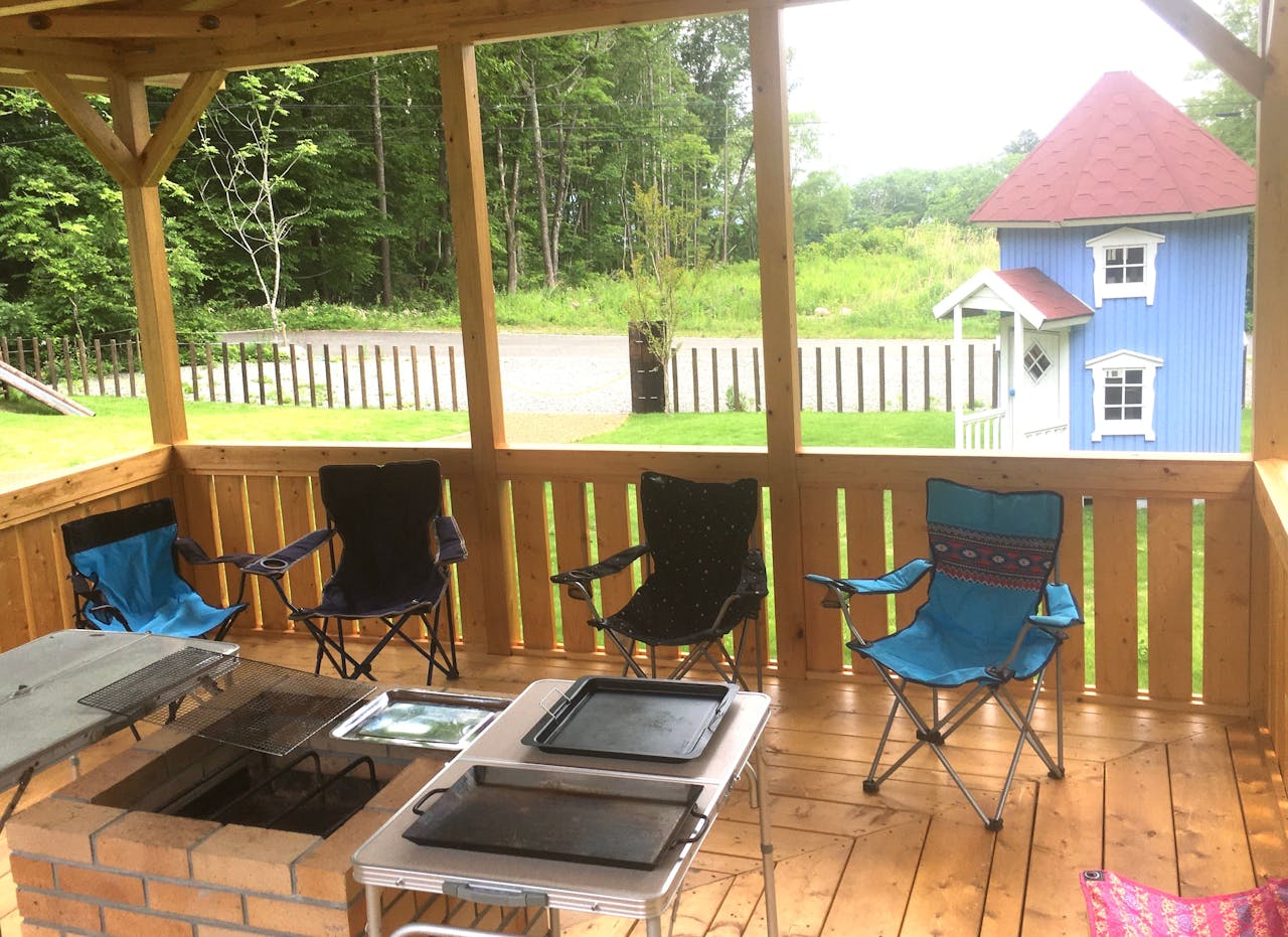 山梨県北杜市にあるヴィラ・ラピスラズリは、一棟貸切型の宿泊施設です。十分な広さの庭には、屋根付きのバーベキュースペースを完備。ムーミンハウス風の小屋やブランコ、すべり台もあり、子どもから大人まで楽しめます。