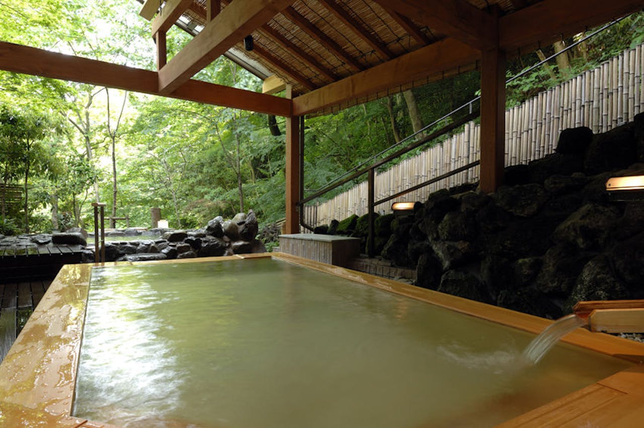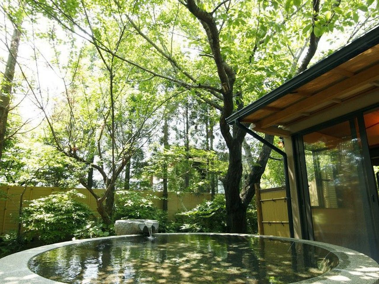 箱根湯本駅から公共送迎バスで約7分の場所にある「箱根湯本 ホテル南風荘」。須雲川のせせらぎが感じられる大浴場の露天風呂のほか、温泉露天風呂付きタイプの客室では、プライベート空間での入浴も楽しめます。疲労回復に効果的なアルカリ性単純温泉の湯で、日頃の疲れを癒してみては。