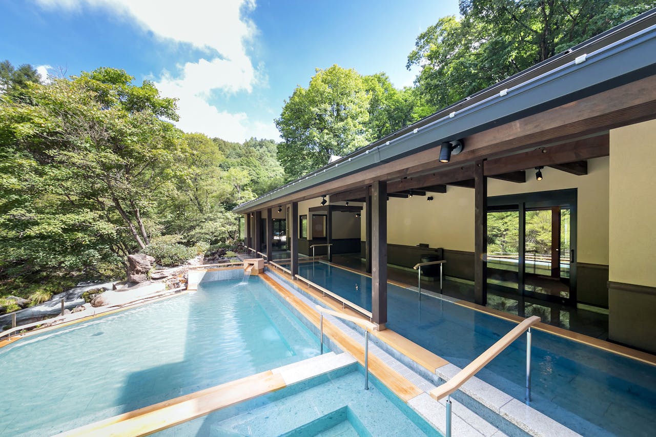 中央自動車道・諏訪ICから車で約30分の場所に佇む「蓼科グランドホテル滝の湯」は、大正12年創業の老舗温泉旅館。大浴場の「渓流露天風呂」では、滝ノ湯川を眼下に望み、せせらぎの音を感じながら寛ぐことができます。泉質は弱アルカリ性の炭酸水素塩泉。美肌成分「メタケイ酸」を多く含んだ”美肌の湯”として人気です。