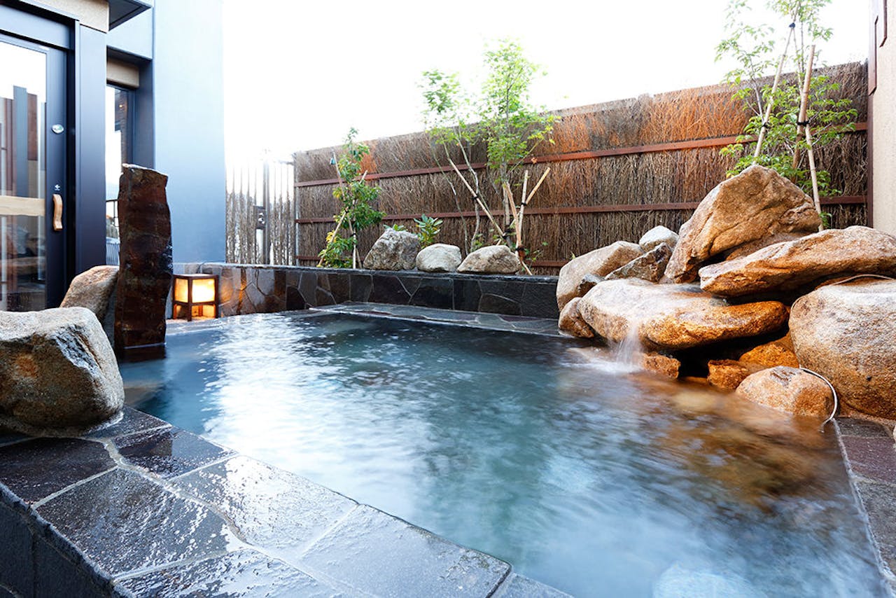 | お風呂 | ■大浴場の数:2 ■営業時間:— ■温泉:あり ■かけ流し:なし ■にごり湯:なし ■補足事項:加温、加水 営業時間14:00~翌8:00、深夜1:00~4:00利用不可 ■露天風呂の数:2 ■貸切風呂の数:2 |
