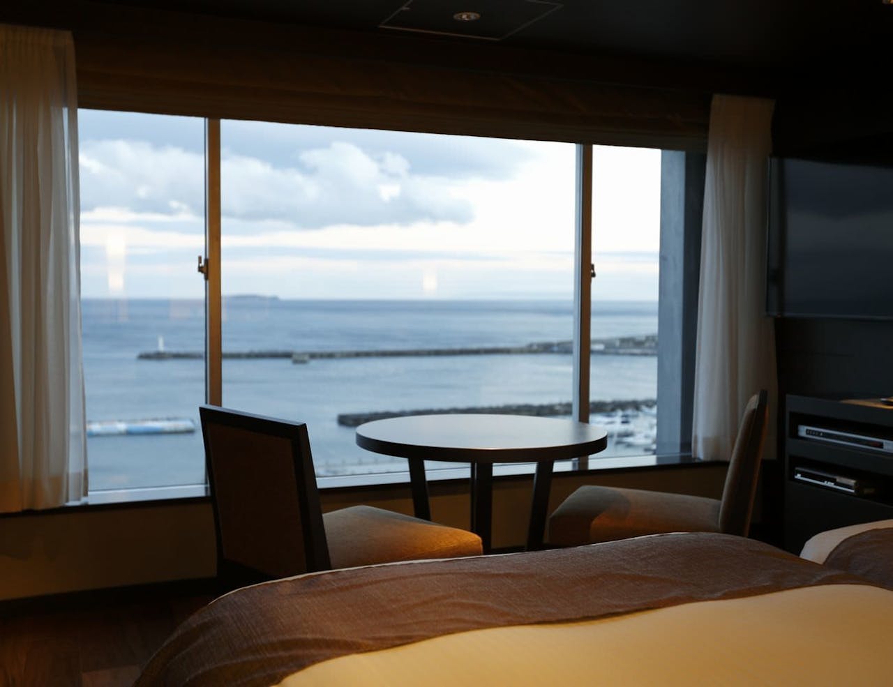 静岡県熱海市にある「UMITO VOYAGE ATAMI」は、客室にキッチンとランドリーが備えられたコンドミニアムスタイルの宿泊施設。全室オーシャンビュー、スイート仕様になっており、テラスからは相模湾の水平線を一望できます。