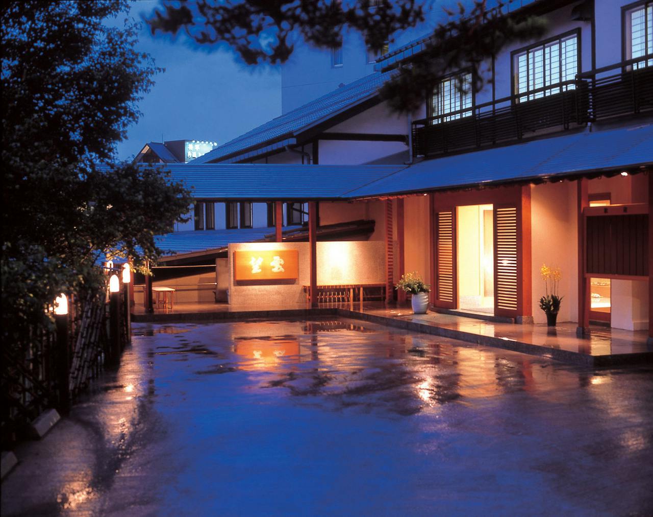 温泉街中心の湯畑から徒歩3分の距離にある、望雲。露天風呂も含め6つの湯船は、すべて源泉かけ流しです。2つの源泉を引いており、それぞれの違いを比較できるのも魅力の一つ。掛け流し露天風呂が付いた客室では、西の河原源泉を心ゆくまで堪能できます。