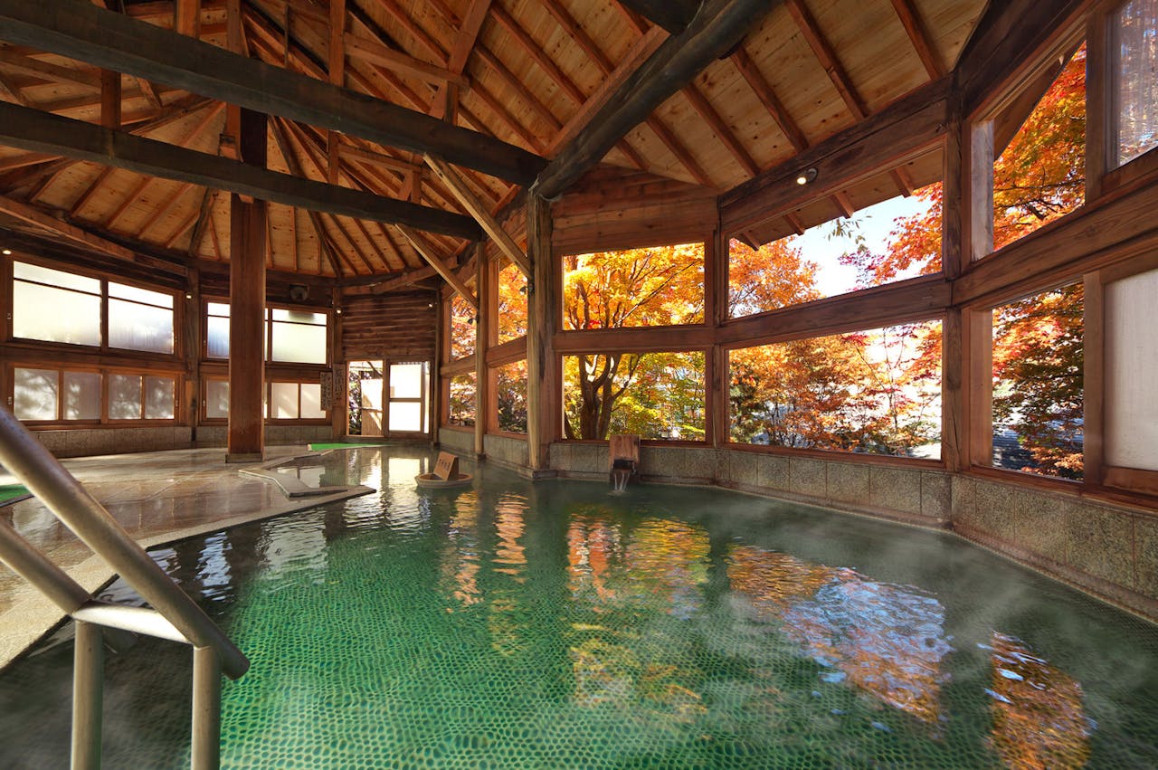 | お風呂 | ■大浴場の数:3 ■営業時間:— ■温泉:あり ■かけ流し:あり ■にごり湯:なし ■補足事項:源泉100% 男女交代制。 14:00~翌朝10:00まで利用可能。(*朝3:30~4:30の間、男女入替のため、入浴不可) ■露天風呂の数:3 |