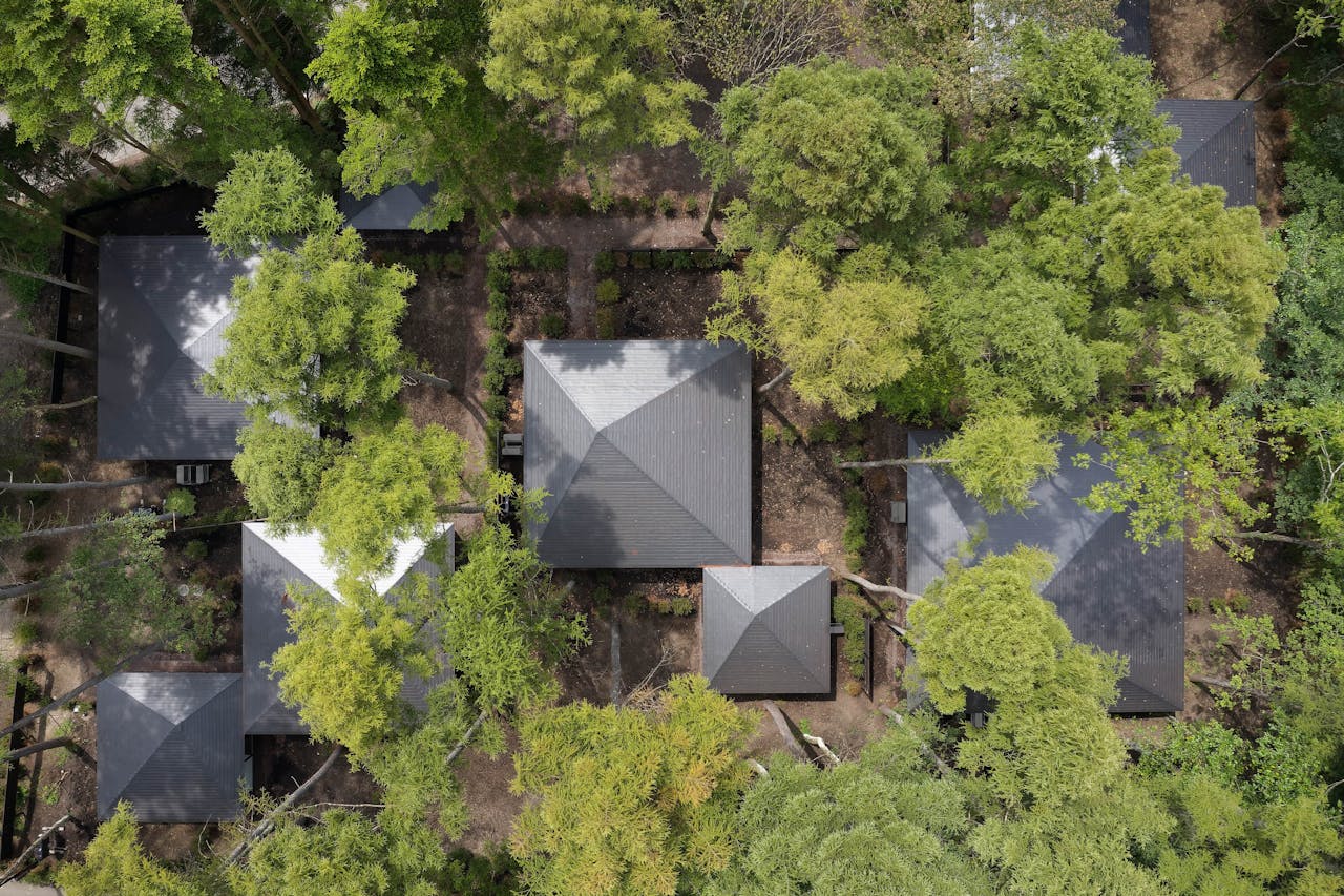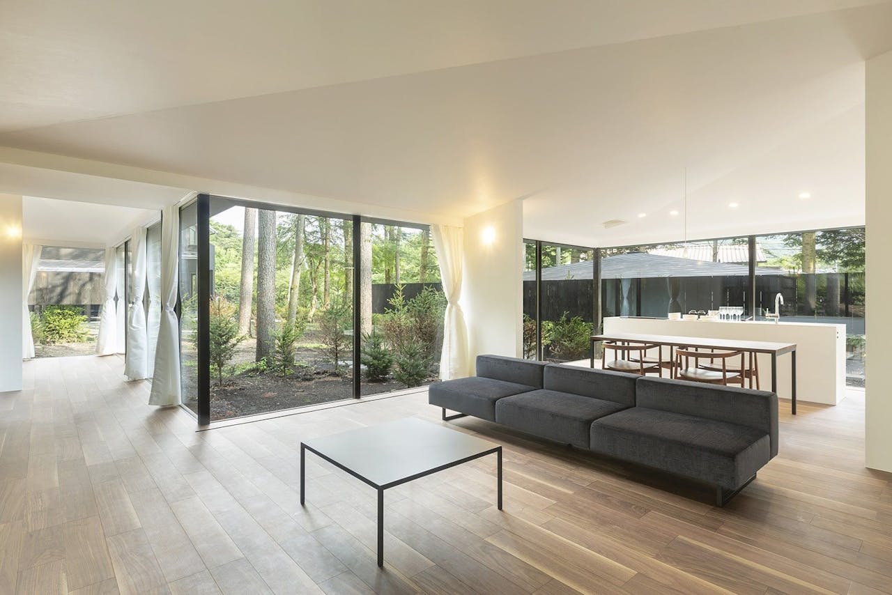 軽井沢駅から車で5分、高原の森の中に佇む「森の離れ」は、5棟のみの平屋の貸別荘からなるヴィラリゾート。広々とした室内にはいたるところにガラスの開口部が設けられ、軽井沢の自然をアートのように鑑賞できます。家電が充実したキッチンやランドリーで、長期滞在でも快適に過ごせます。家族やグループで避暑地を堪能できます。