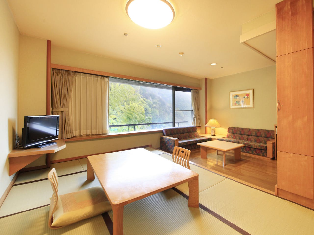 おすすめのプランは「【お部屋でしゃぶしゃぶ】1日10食限定!夕食「牛しゃぶしゃぶ&釜飯膳」&朝食弁当~広いお部屋で過ごす 【禁煙】スタンダード(和洋室120平米)」、24,035円~(2名、夕朝食付)。