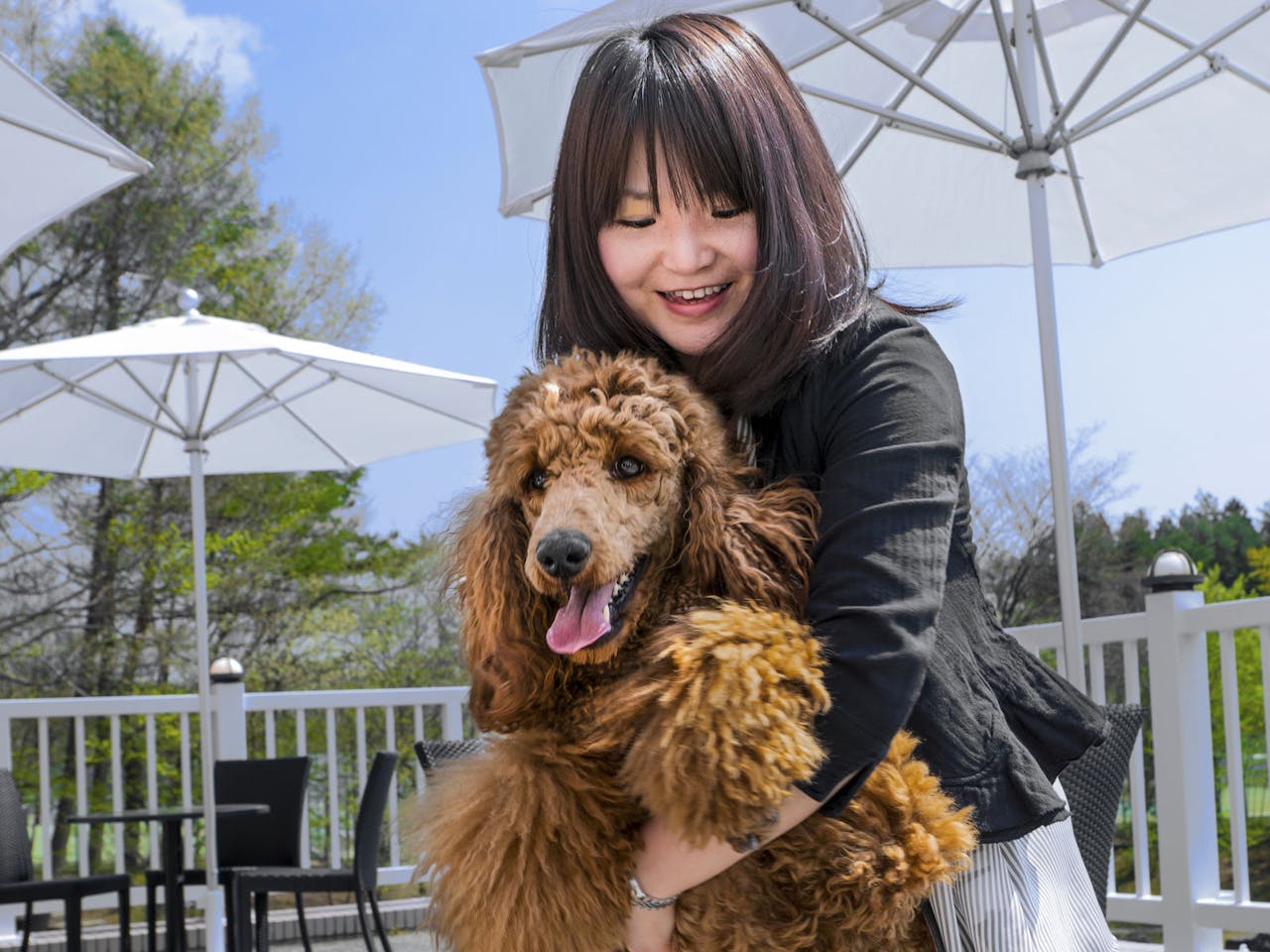 東北自動車道・那須ICから車で約10分の場所に建つ「ホテルエピナール那須」には、周りを気にせずに愛犬とゆったり過ごせる離れのテラス棟があります。敷地内には、那須エリア最大級のドッグランも併設。フリーエリアと小型犬専用エリアが分かれているため、小型犬でも安心して遊べます。四季折々の自然の風景が楽しめる散策の森でのお散歩もおすすめです。