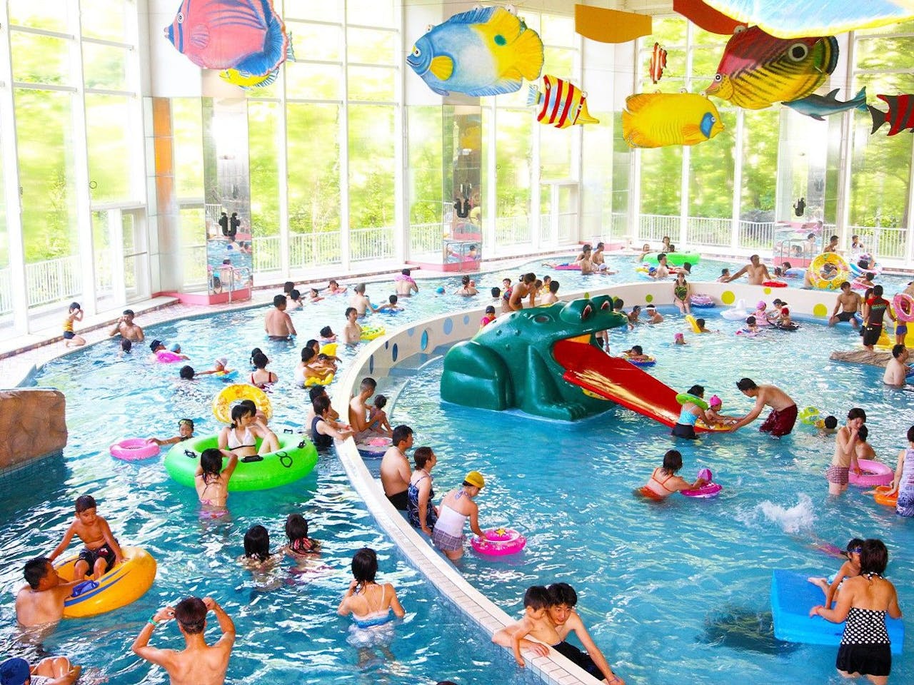 札幌より車で50分の場所にあり、J R札幌駅からは無料送迎バスが運行している(要予約)定山渓ビューホテル。こちらは札定山渓随一の巨大スパ・リゾートが自慢のホテルです。総面積4,000平米を誇る屋内温水プールには、スプラッシュリバーや波が押し寄せるウェーブプール、流れるプールなど楽しい施設が盛りだくさん。さらに2種の絶景露天や、セルフロウリュを備えた本格サウナも完備されています。