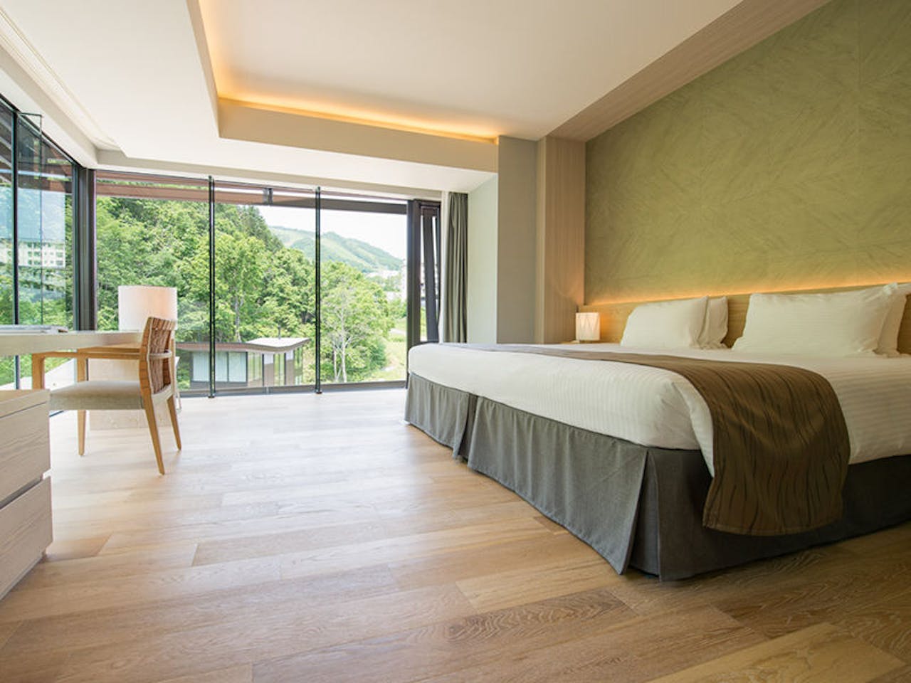 JR倶知安駅より車で約15分(駅からの送迎もあり)の場所にある、綾ニセコ。ニセコの大自然に佇むホテルの周辺にはトレッキングやラフティング、ゴルフなど、大自然を楽しめるアクティビティが充実しています。客室はリビングダイニングやキッチン、独立したベッドルームなどゆとりのある空間になっており、別荘気分でリラックスした時間を過ごせますよ。