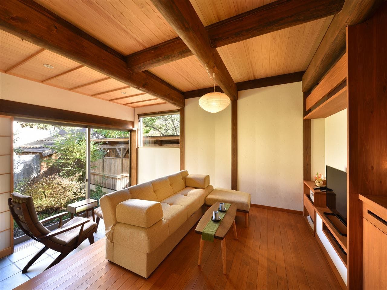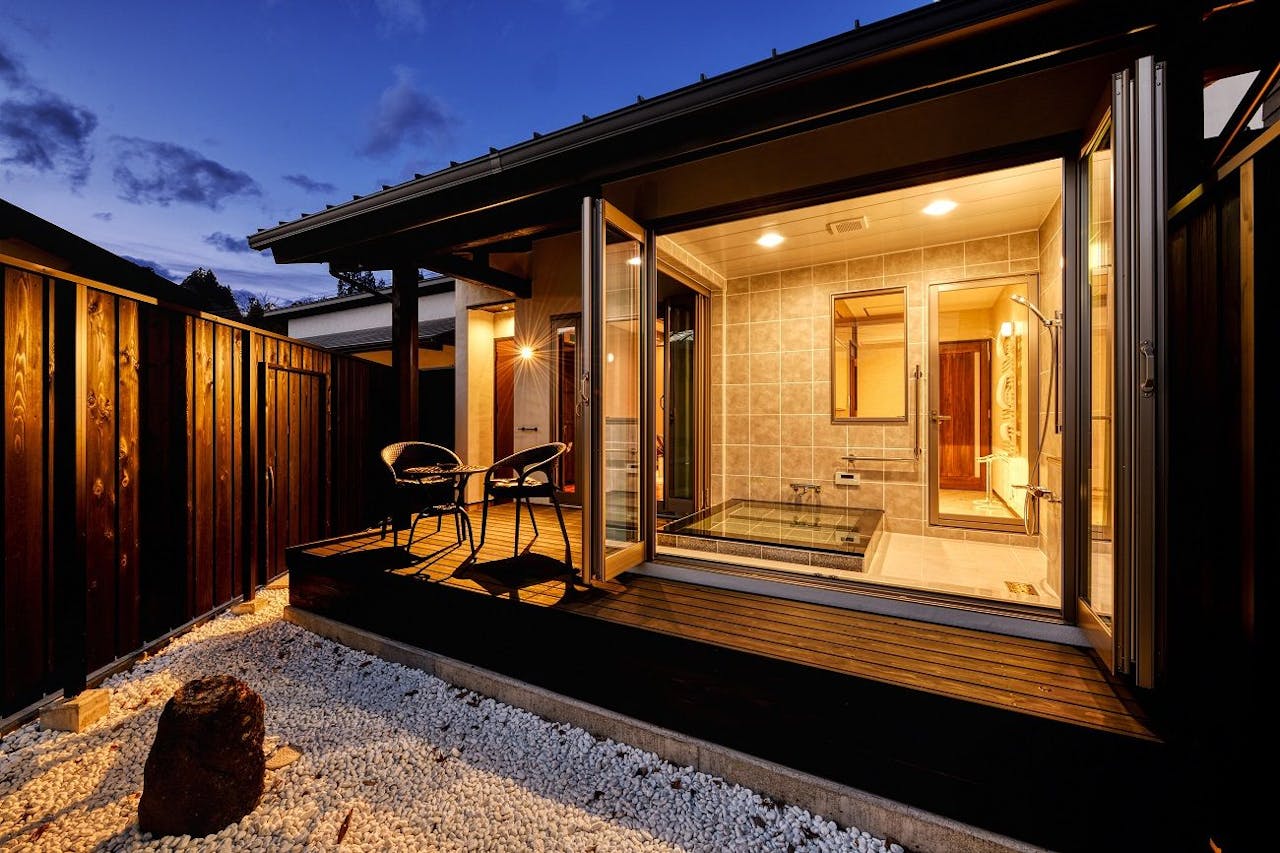 東北自動車道・那須ICから約20分の場所にある「伏楽の館那須湯本店」は、愛犬と一緒に宿泊できる全8室の宿。全客室には源泉掛け流し温泉での入浴が楽しめる露天風呂が備わっています。また、食事は部屋食で提供されるため、到着から出発までゆったりとおこもりステイを堪能できるのもポイント。