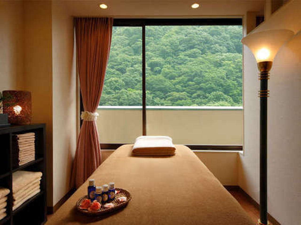 鬼怒川温泉駅からバスで約8分の川沿いに佇む「鬼怒川温泉 あさや」。鬼怒川の山々を一望する空中庭園露天風呂と、和洋中100種のメニューが並ぶバイキングが人気の温泉旅館です。館内には、岩盤浴やクイック・マッサージ、整体、足裏リフレクソロジーなどの癒やしメニューも用意。ルームマッサージにも対応しています。