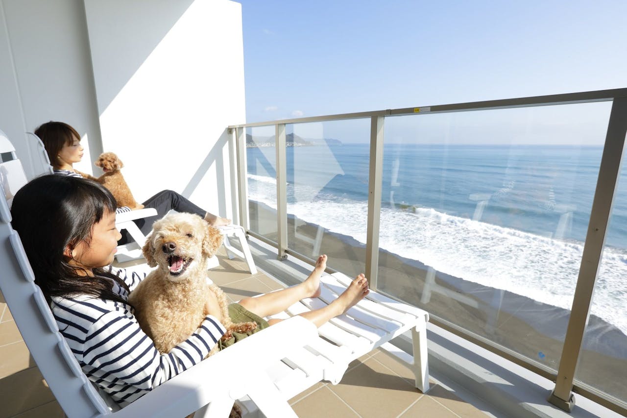 おすすめのプランは「愛犬と過ごすビーチリゾート!絶景パノラマオーシャンビュー!-1泊2食付き- スタンダードB/40平米・3階~5階・テラス8平米」、47,564円~(2名、夕朝食付)。