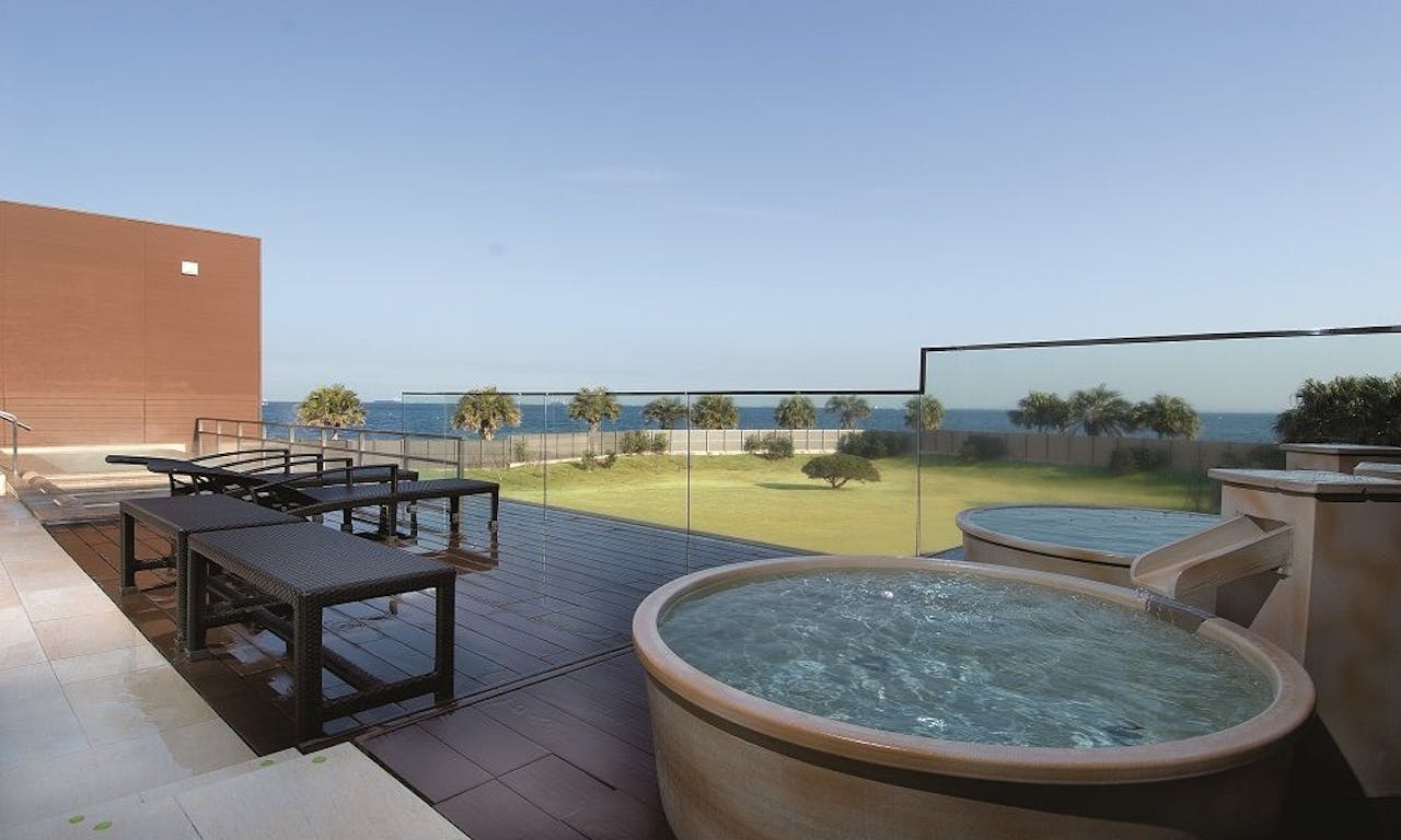 神奈川県横須賀市にある「観音崎京急ホテル」は、青い海と空が眼前に広がるオーシャンリゾート。ホテルに隣接している温浴施設「SPASSO」では、ボディケアや岩盤浴などが利用でき、ホワイトシルキーイオンの内風呂も完備。湯上りスペースが設けられた眺望露天風呂・かめ湯も要チェックです。