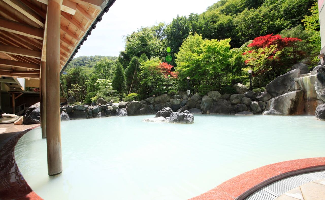 札幌から車で約50分、札幌市内からは無料送迎も用意されている、ぬくもりの宿 ふる川。定山渓の豊かな自然と温泉を堪能できる展望大浴場に、貸切風呂、百年前の湯浴みを再現した「ゆ瞑み露天風呂」など、様々な湯処が楽しめます。館内は囲炉裏や、木のぬくもりを感じられる空間作りになっており、宿でゆっくりと過ごしたい方におすすめです。