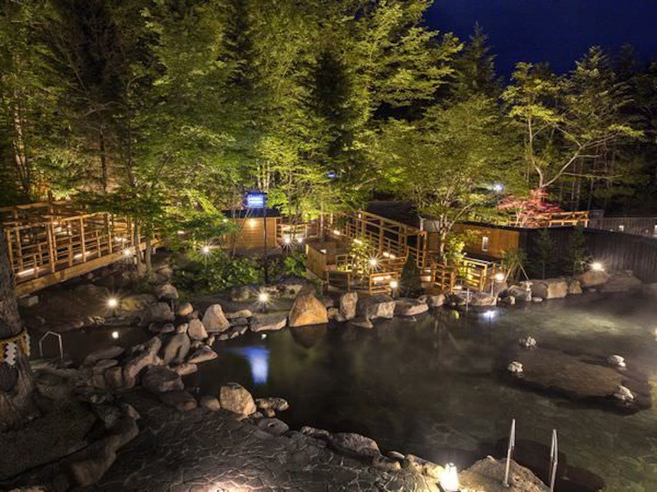 | お風呂 | ■大浴場の数:10 ■営業時間:— ■温泉:あり ■かけ流し:なし ■にごり湯:なし ■補足事項:加水 ※日中の11:00~15:00、深夜2:00~3:30は清掃(男女入れ替え)のお時間となるため使用できません。 ※大露天風呂は、毎週火曜日18時頃までお湯を抜いて特別清掃を行うため湯量が少ない状態となります。 その他浴場は通常通りご利用いただけます。 ※当館では、森のソラニワ・ホロホロ山荘への湯めぐりはご利用いただけません。 ■露天風呂の数:22 |