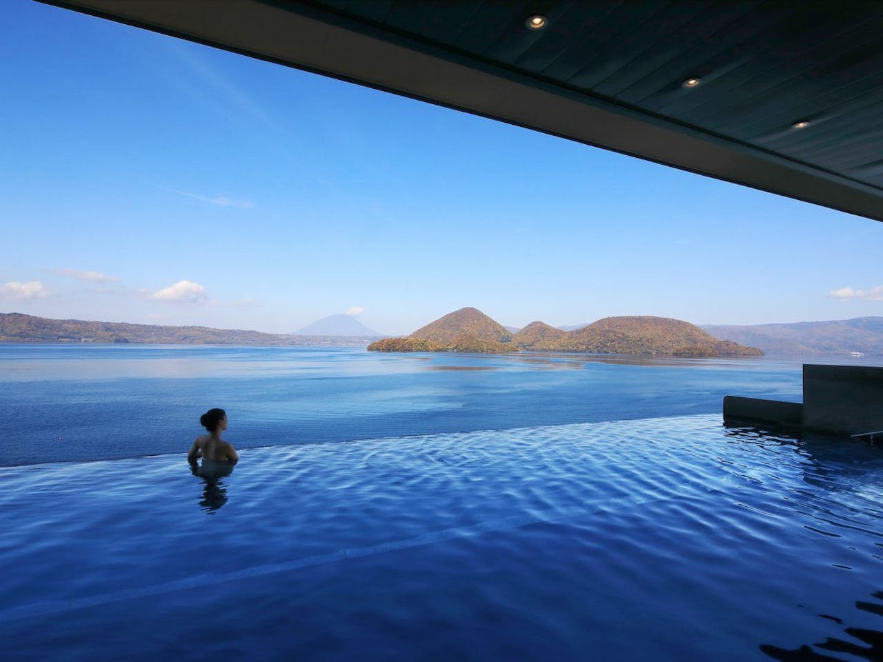 JR洞爺駅より車で約20分(無料送迎あり)、洞爺湖の側に佇むザ・レイクスイート湖の栖【洞爺サンパレスリゾート&スパ 別館】。こちらのホテルは全客室に温泉露天風呂と9.5平米のインフィニティ設計のテラスがあり、一面に広がる洞爺の自然を身近に感じることができます。8階にも湖を見渡せる大浴場に加え、サウナも完備。非日常を体感したい方におすすめです。