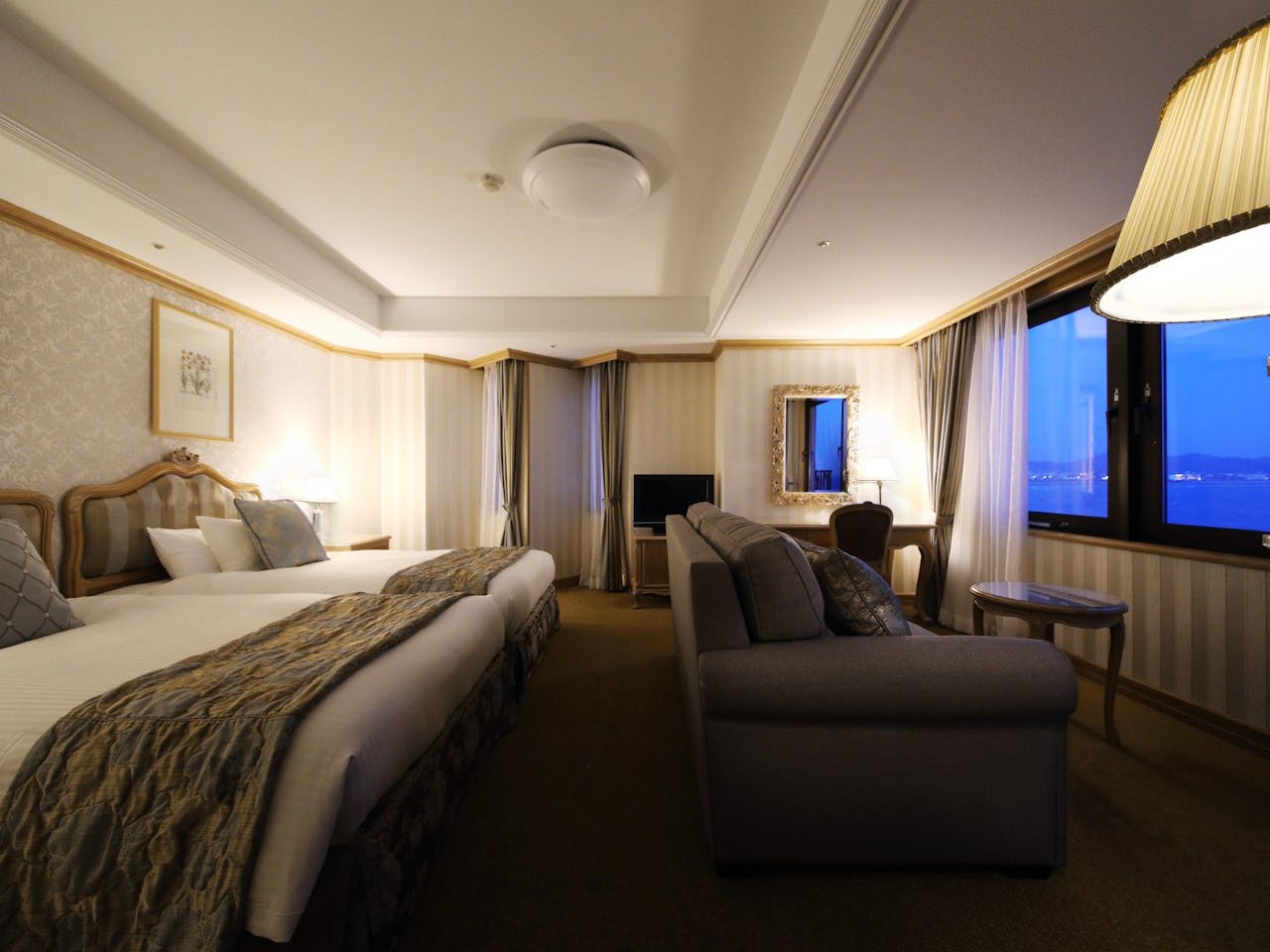 | お子様 | 宿泊可 レギュラーサイズのベッド(トランドルベッド、クルーズベッド以外)1台につき子ども(小学生以下)1名の添い寝可能。 |