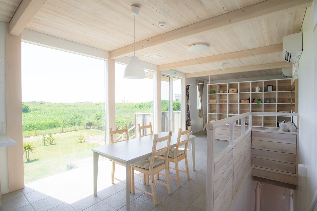 館山駅からバスで約30分、風光明媚な南房総に佇む「Vacation House & Studio ル・ファーレ白浜」は、全部で3棟のみの貸別荘。ベッドルームやリビング、キッチンのほかにスタジオも備えたコテージでは、音楽演奏やレコーディングも可能です。食事は自炊のほかBBQや出張料理人サービスも提供。