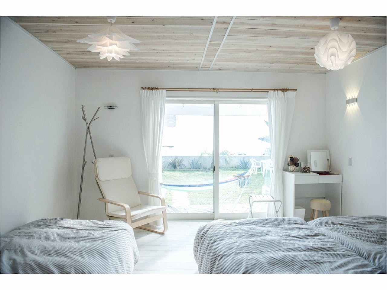保田駅より徒歩5分、海まで30秒のオーシャンサイドに佇む「Hota Beach」。広々としたドッグランを備える一棟タイプの貸別荘です。2LDKの平屋の客棟は全室オーシャンビュー。屋根付きウッドデッキにはBBQコンロを備え、人犬兼用の屋外シャワーも完備するなど、ビーチリゾートを堪能する設備が満載です。