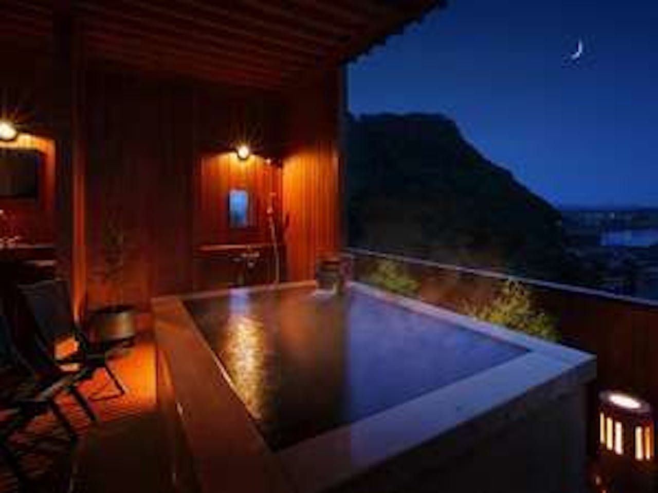 君津駅より車で5分、木更津に程近い立地に佇む「燦美の宿 旅館かわな」。宿から見える東京湾の夜景と房総の地魚をふんだんに使った料理が人気の旅館です。5箇所の貸切風呂は、「天照の湯」のみ1組50分3,000円となるものの、4つは無料で利用可能。ノスタルジックな内装の半露天風呂付き客室もおすすめです。