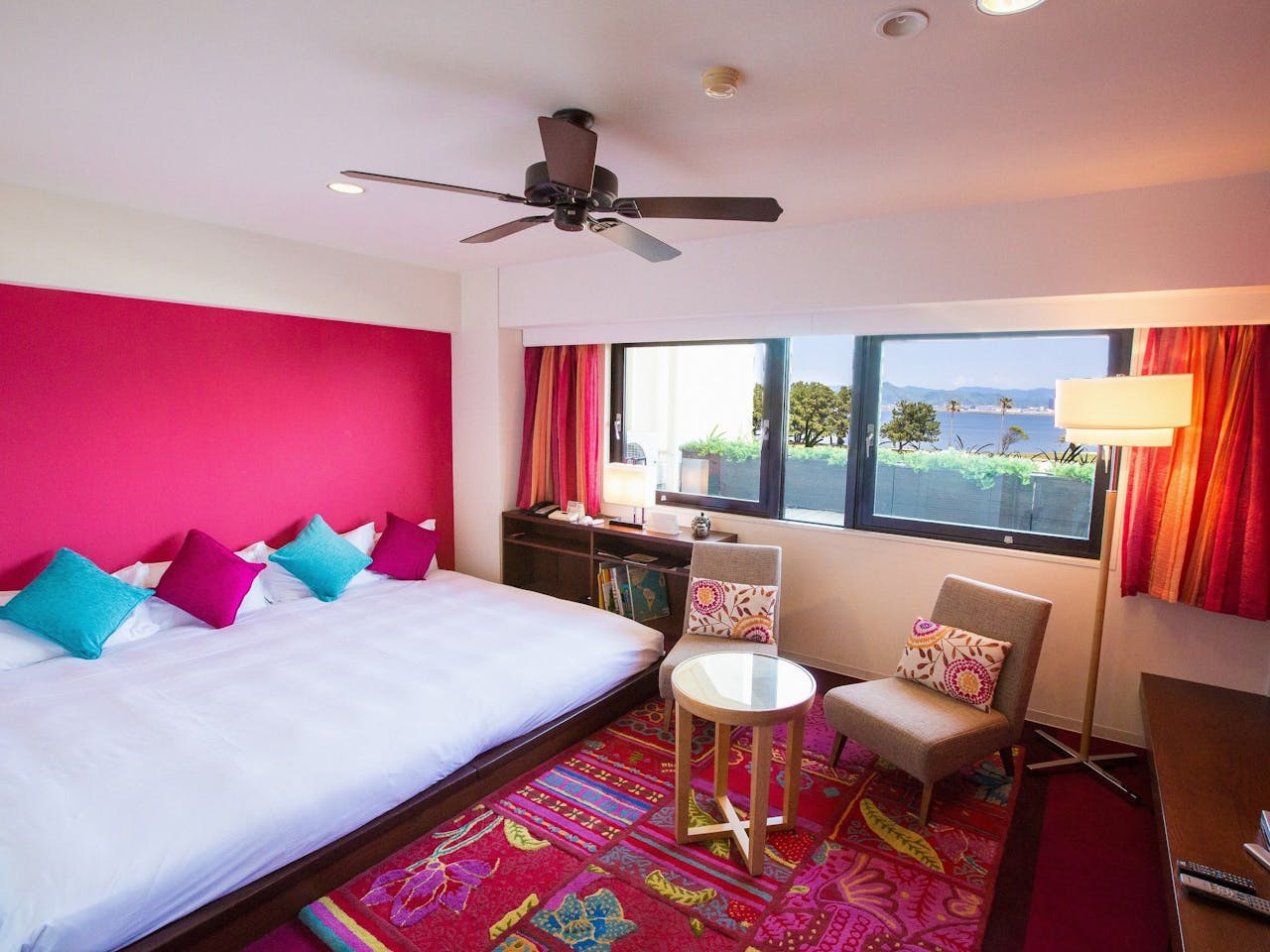 福岡県福岡市の「THE LUIGANS-Spa & Resort-ザ・ルイガンズ.」は、全国18カ所の国営公園の一つ、海の中道海浜公園に佇むリゾートホテルです。赤ちゃんや小さな子どもと一緒の滞在には、靴を脱いで過ごせるバラガンキディルームが人気。ベッドよりも落下の心配の少ないマットレスを配置しています。