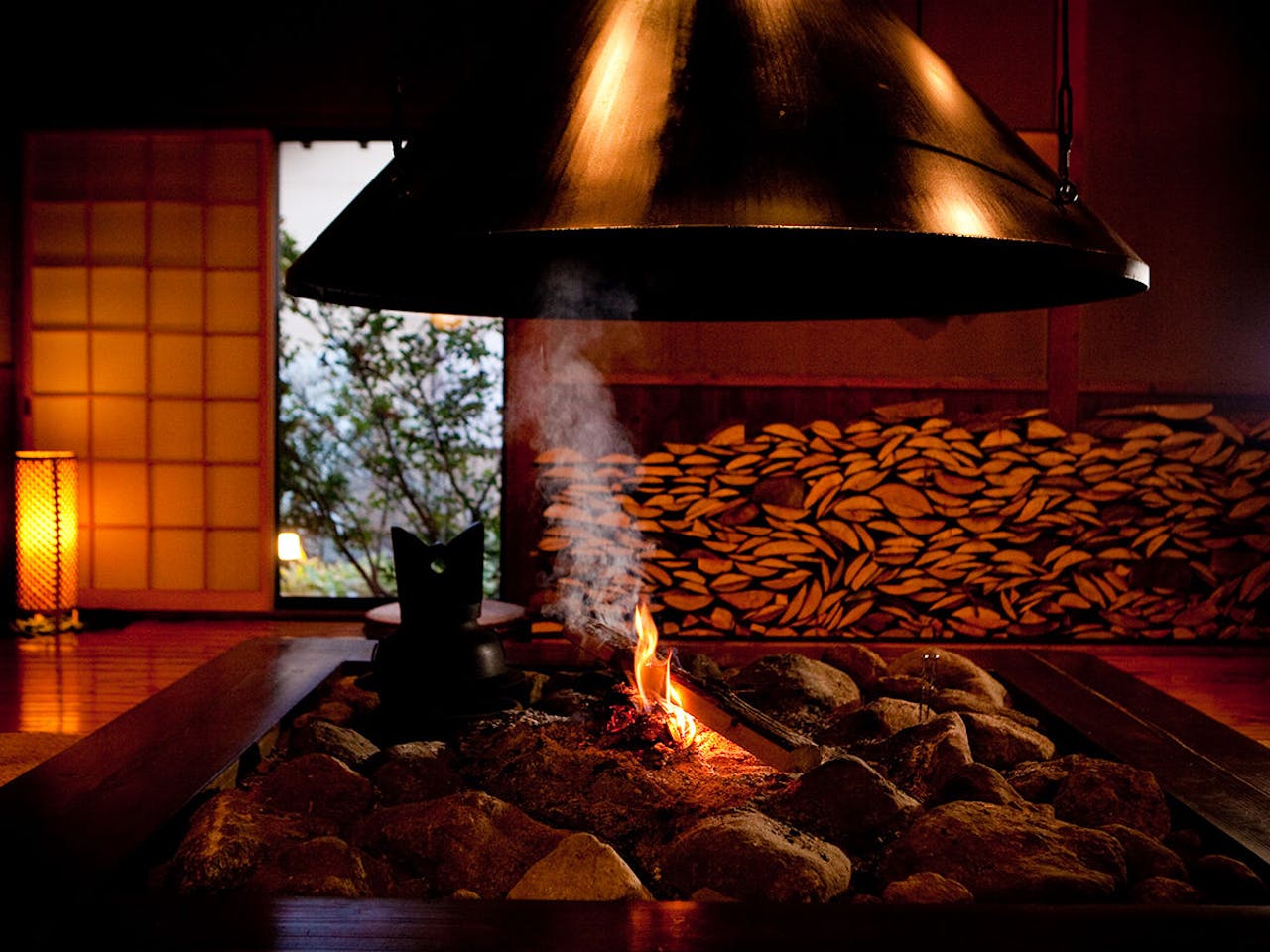 由布院の塚原高原に佇む隠れ宿「御宿 由布乃庄」。約4000坪の敷地にある客室は8つの離れのみ。母屋からは緑豊かな小道を抜けて向かいます。4つの温泉は貸し切りなことに加え、露天風呂から見上げる星空の美しさも格別。七輪で炭火焼きの夕食を楽しんだ後は、母屋の囲炉裏を囲ってコーヒーをいただいてみては。