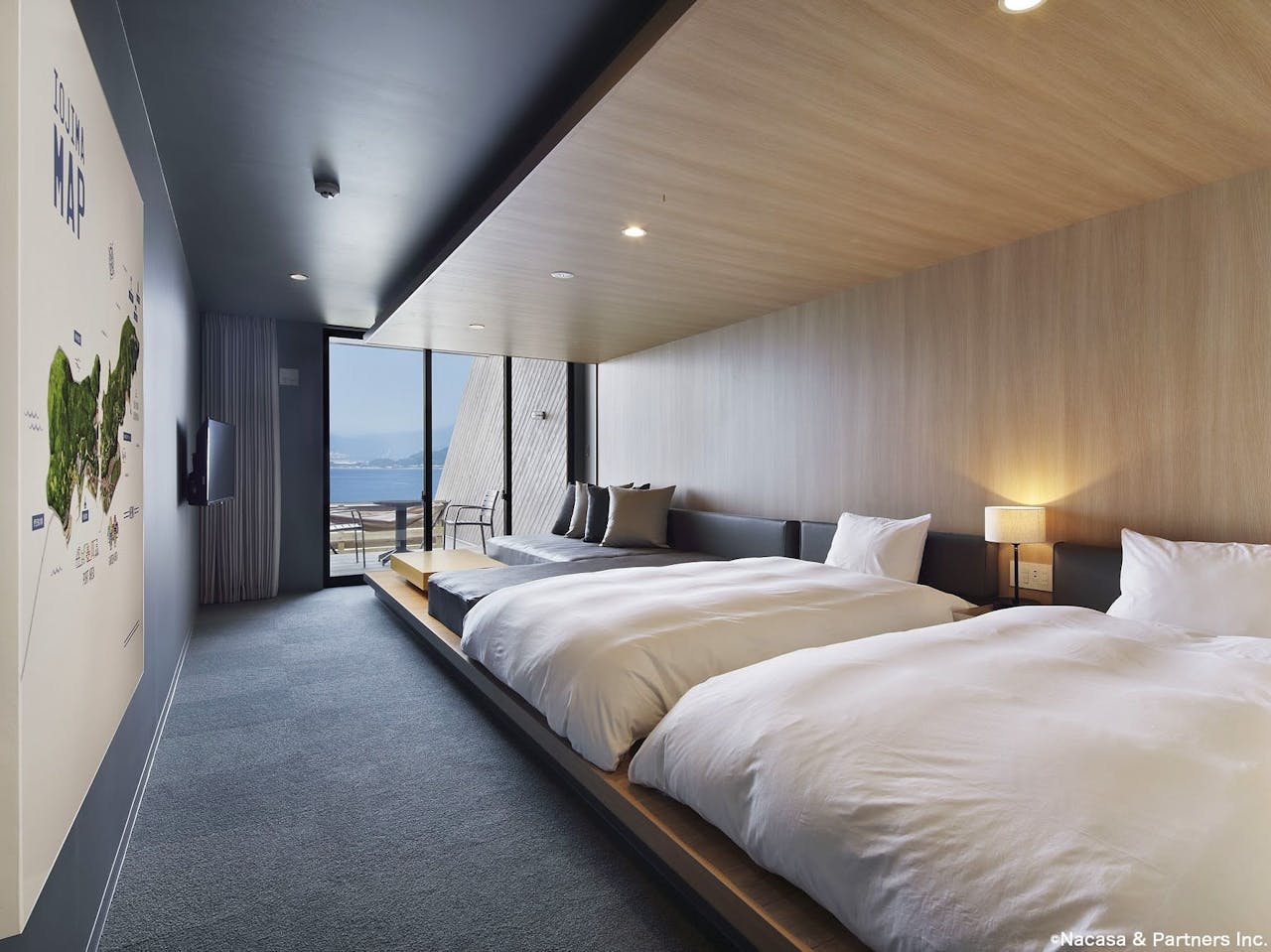 長崎駅から無料送迎バスで約40分、伊王島の海沿いに佇む「i+Land nagasaki」は、広大な敷地内に2か所の温泉とスパを備えるリゾートホテル。レンタサイクルやSUPなど家族で楽しめるアクティビティも充実しています。夕食後はライトアップした島内でナイトウォークを開催。非日常の休日を堪能できます。