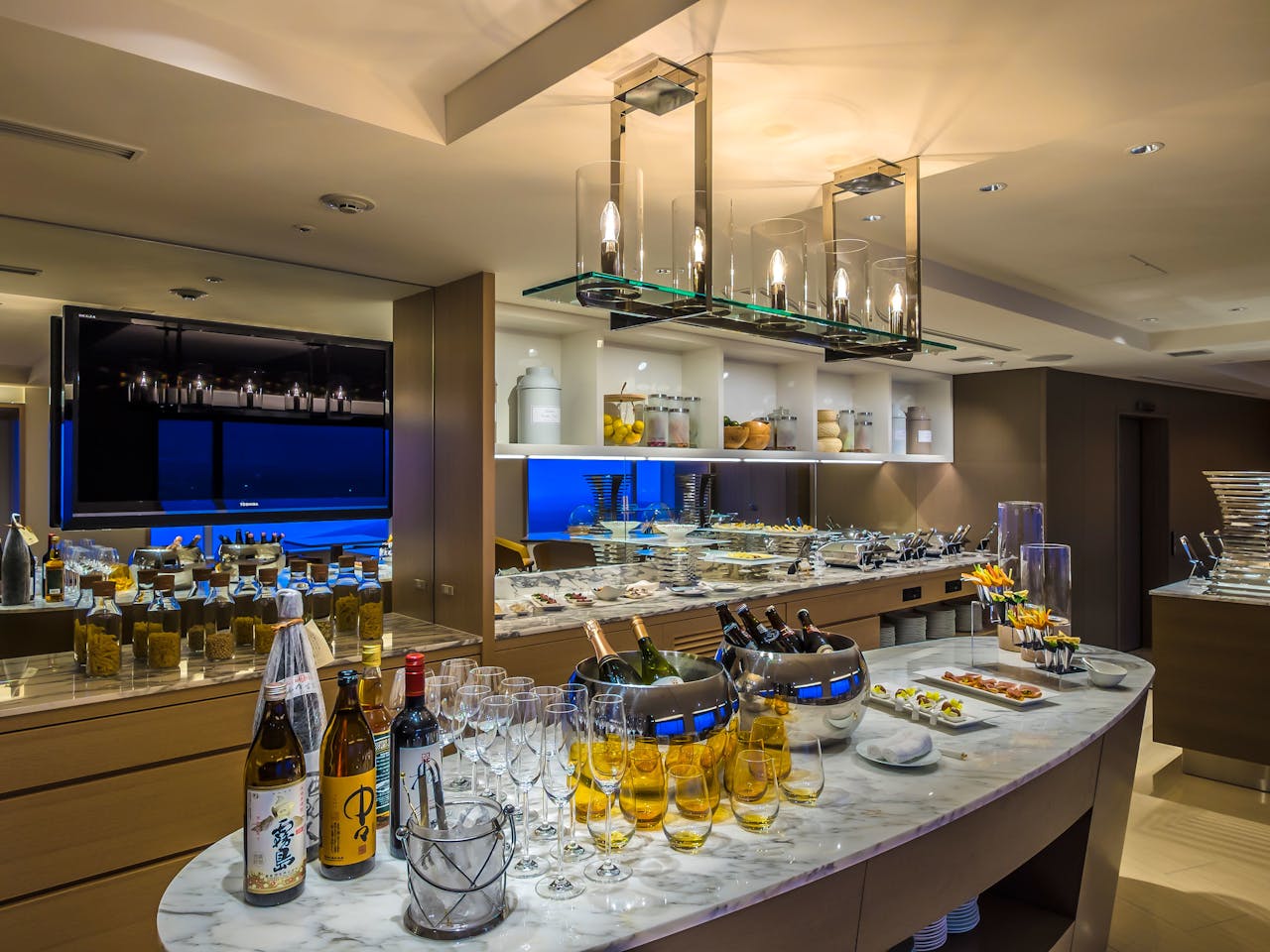 JR博多駅から車で約15分、海沿いにそびえる「ヒルトン福岡 シーホーク」は、全室オーシャンビューのリゾートホテル。30~33階に位置するエグゼクティブフロアから望む博多湾と市街地の景色は格別です。エグゼクティブラウンジでは、朝食やカクテルタイムを高層階からの眺望とともに楽しめます。(現在、専用ラウンジは営業休止中のため4階ブラッセリー&ラウンジ シアラにて特典利用可能)
