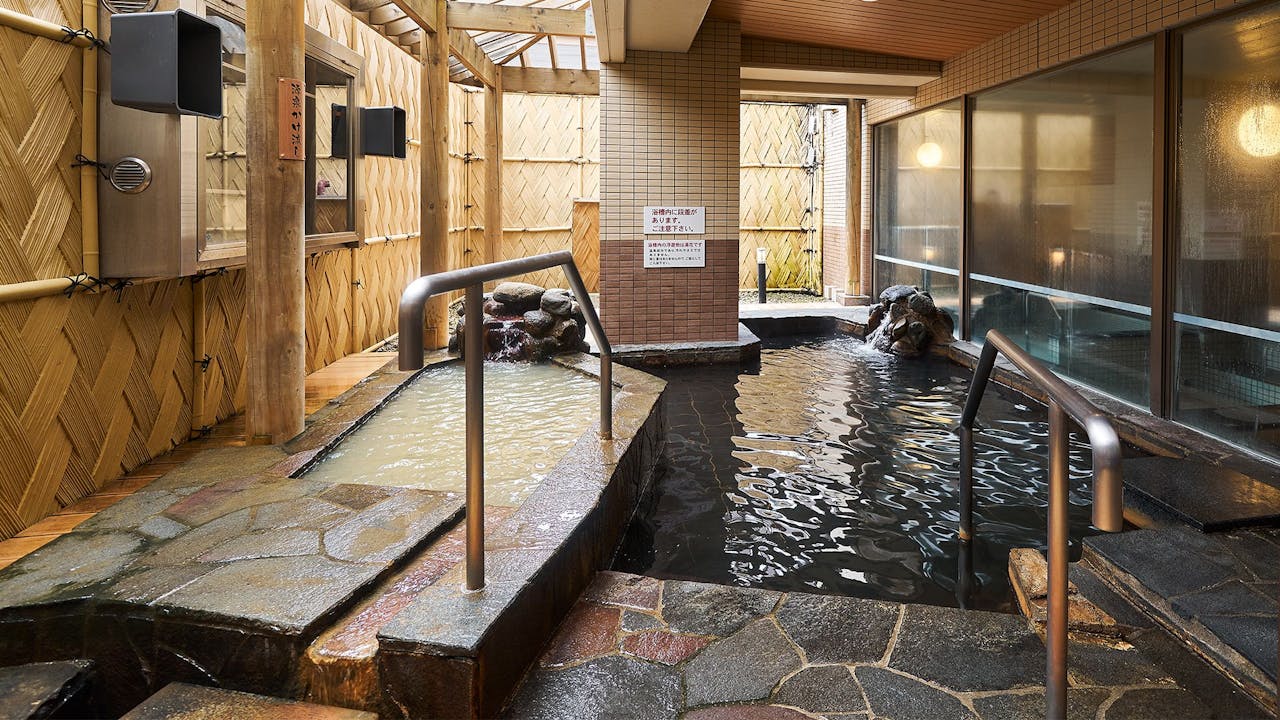 | お風呂 | ■大浴場の数:2 ■営業時間:05:30~24:00 ■温泉:あり ■かけ流し:あり ■にごり湯:なし ■補足事項:加温 9:30~14:00まではご利用できません。 ■露天風呂の数:2 |