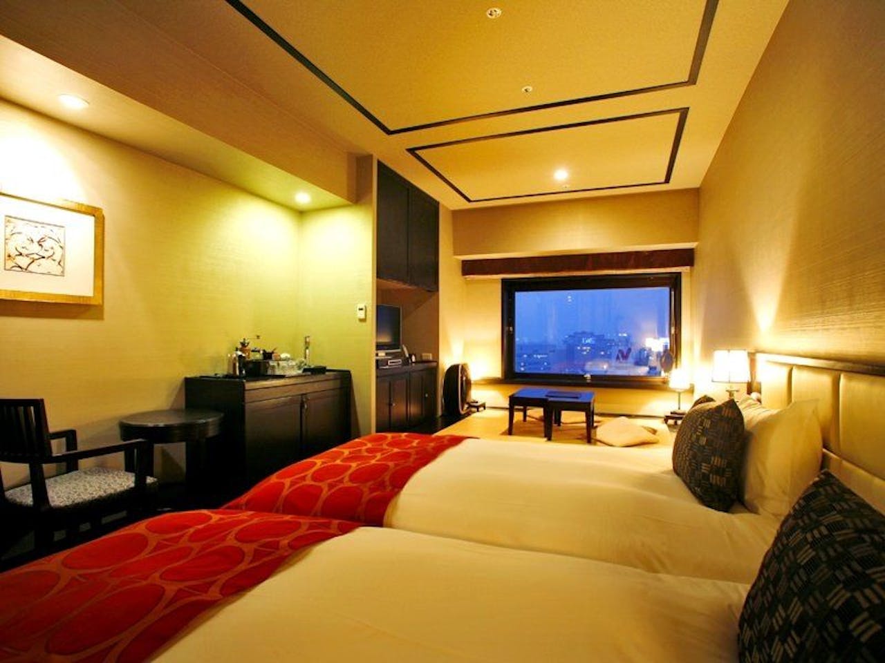 おすすめのプランは「【別亭】<ビジネス・カップル・ファミリーも!>全室33平米以上!広いお部屋でゆったり~朝食付~別亭・和洋室13-14F【禁煙】」で上質なビュッフェ&グリルを 高層階サンセットツイン 2名迄/18年リニューアル」18,590円~(2名、朝食付)。