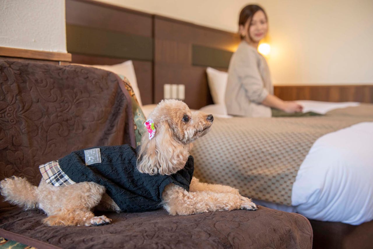 おすすめのプランは「ペット同宿【スタンダード会席】ペットと記憶に残る温泉旅行(中型犬OK)<2食付> ペット2F和室12畳<バス・トイレ付き>※禁煙」、29,680円~(2名、夕朝食付)。