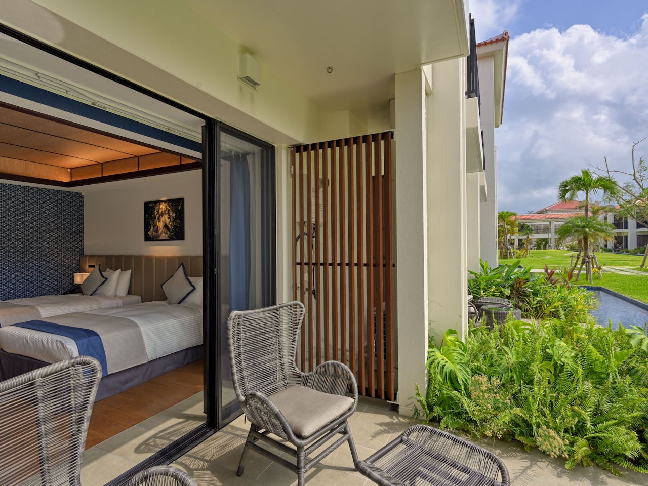 那覇空港から車で約100分、本島最北の国頭村に位置する「オクマ プライベートビーチ & リゾート」。白砂が美しいオクマビーチと世界自然遺産やんばるの森に囲まれ、大自然を堪能できます。客室は広大な土地に点在するコテージとヴィラタイプの2種類。プライベートな空間でゆったりリゾート気分が楽しめます。